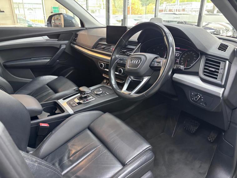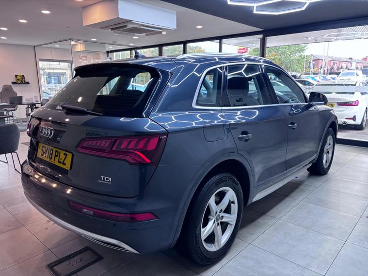 This 2018 Audi Q5 TDI Sport boasts a clear vehicle history, offering you peace of mind. This four wheel drive model features a 2.0 litre diesel engine, meeting Euro 6 emission standards. Inside, you'll find a comfortable cabin equipped with Deluxe 3-Zone Climate Control, heated front seats, and an Audi Parking System Plus with front and rear sensors for effortless manoeuvring. The Bluetooth interface allows for seamless connectivity, while the light and rain sensor automatically adjusts headlights.Experience impressive performance with a 0-62mph acceleration time of just 7.9 seconds. This Q5 also offers excellent fuel economy, achieving up to 57 miles per gallon, and benefits from low CO2 emissions, making it a more economical choice compared to similar vehicles. With a substantial boot space, it's practical for all your needs, and its 2400 kg towing weight adds to its versatility..