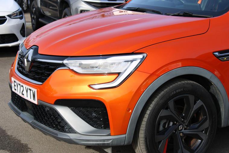 This 2022 Renault Arkana E-TECH r.s. line is a superb example, having been owned by just one careful keeper. This striking model features a 1.6 litre petrol hybrid engine, meeting Euro 6 emission standards. It comes equipped with a suite of advanced driver aids, including Adaptive Cruise Control with Speed Limiter, a comprehensive Parking Pack with Blind Spot Assistance, and both front and rear parking sensors, complemented by a rear view camera for effortless manoeuvring. Automatic headlights further enhance convenience and safety.The Arkana E-TECH r.s. line stands out with its impressive fuel economy, achieving a remarkable 59 miles per gallon, which is significantly better than many other vehicles in its class. Its low CO2 emissions also contribute to its appeal, alongside a low insurance group rating, making it an economical choice for many drivers. Furthermore, you'll appreciate the generous boot space, offering ample room for shopping, luggage, or sports equipment..