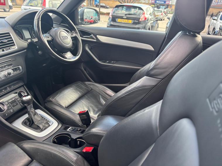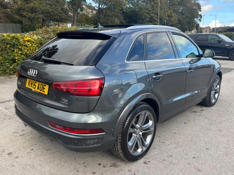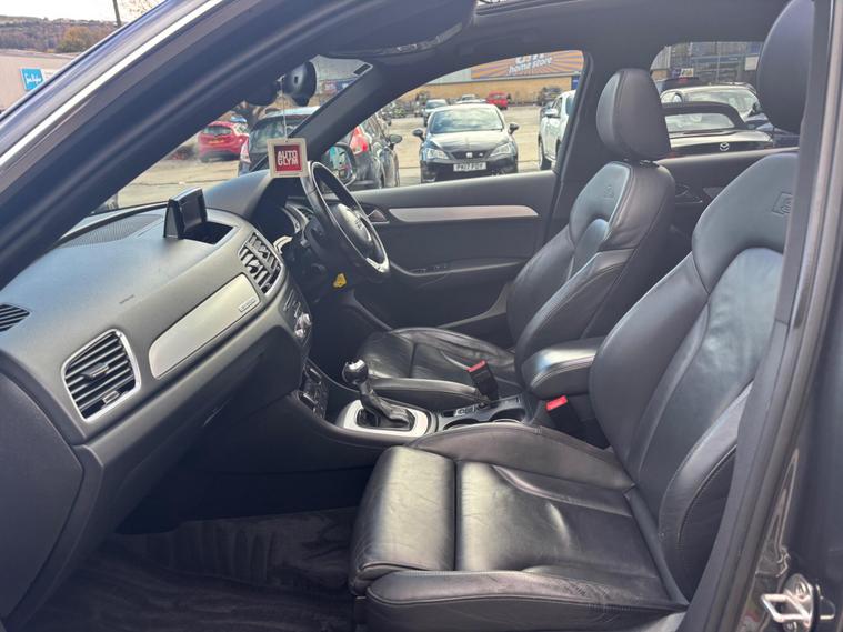 WE ARE PLEASED TO OFFER THIS HIGHLY DESIRABLE HIGH SPECIFICATION HIGHLY MAINTAINED FOUR WHEEL DRIVE EURO SIX AUTOMATIC AUDI Q3 2.0 TDI S LINE PLUS S TRONIC QUATTRO FIVE DOOR + FINISHED IN THE BEST COLOUR OF DAYTONA GREY METALLIC PAINTWORK AND IS COMPLEMENTED WITH A BLACK FINE NAPPA LEATHER LEATHER UPHOLSTERY EMBOSSED S LINE + A SENSIBLE MOTORWAY MILEAGE OF 161, 142 MILES HAS BEEN COVERED IN TOTAL + LAST OWNER SINCE JULY 2019 AND IS BACKED WITH AN OUTSTANDING SERVICE HISTORY + JUST BEEN FULLY SERVICED WHICH INCLUDED THE CAMBELT KIT AND WATER PUMP BEING REPLACED PLUS THE HALDEX OIL BEING CHANGED + THE MOT IS TILL THE 6TH OF OCTOBER 2026 + EXCELLENT CONDITION THROUGHOUT AND DRIVES SUPERB + 184 BHP MODEL + FULL S LINE PLUS SPECIFICATION WITH A HOST OF EXPENSIVE FACTORY OPTIONS WHICH INCLUDES AN ELECTRIC PANORAMIC GLASS SUNROOF / SATELLITE NAVIGATION / CRUISE CONTROL / DAB TUNER / 19'' OFF ROAD ALLOY WHEELS FINISHED IN DARK GREY / FRONT AND REAR PARKING DISTANCE CONTROL WITH A REAR VIEW CAMERA / HEATED FRONT SEATS / POWER TAILGATE / FRONT SPORT SEATS / MULTI FUNCTION LEATHER STEERING WHEEL / TINTED GLASS PLUS MUCH MORE + HANDBOOK PACK + DIGITAL PRINTOUT SERVICE HISTORY + 2 X KEYS + ANY TRIAL OR INSPECTION IS WELCOMED + HPI CLEAR WITH CERTIFICATE + SIX MONTHS NATIONWIDE WARRANTY IS INCLUDED + VIEWING IS ESSENTIAL TO APPRECIATE THIS MUCH SOUGHT AFTER OUTSTANDING VALUE FOR MONEY PRESTIGE SUV FOUR WHEEL DRIVE. We have been established in Baildon for over 20 years. All our vehicles are fully inspected, prepared and valeted. We are finance specialists. Part exchange is welcome. All major credit and debits accepted. Open 7 days. Our postcode is BD177EX..