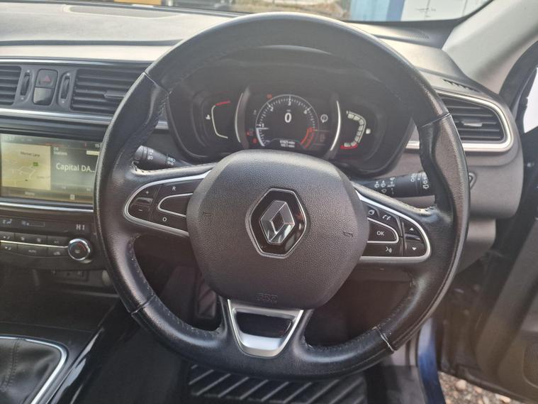 A superb example of this ONE OWNER RENAULT KADJAR 1.5 dCi Dynamique S Nav with a service history to compliment ** SATELLITE NAVIGATION ** BLUETOOTH TELEPHONY ** 12 MONTHS MOT ** PARKING SENSORS ** ROOF RAILS ** USB CONNECTIVITY ** CRUISE CONTROL ** PANORAMIC ROOF ** This 2017 Renault Kadjar dCi Dynamique S Nav presents a superb ownership proposition, having been cherished by just one owner from new and boasting a remarkably low mileage of 61830 miles for its age. This Euro 6 compliant 1.5L diesel engine is paired with the Dynamique S Nav trim, offering a refined driving experience. You'll appreciate the convenience of keyless entry with the hands free keycard, front and rear parking sensors for effortless manoeuvring, and automatic headlights as part of the climate pack. Inside, the Arkamys 3D Sound DAB radio with Bluetooth and USB connectivity, alongside Apple CarPlay integration, ensures your journeys are always accompanied by your favourite music and seamless smartphone integration.This Kadjar stands out with its exceptional fuel economy, achieving an impressive 72 miles per gallon, which is a significant advantage over many other vehicles in its class. Furthermore, its low insurance group rating means more savings for you, and its low CO2 emissions contribute to a more environmentally friendly drive. A 12 month MOT will be provided on purchase, offering peace of mind for your motoring needs..