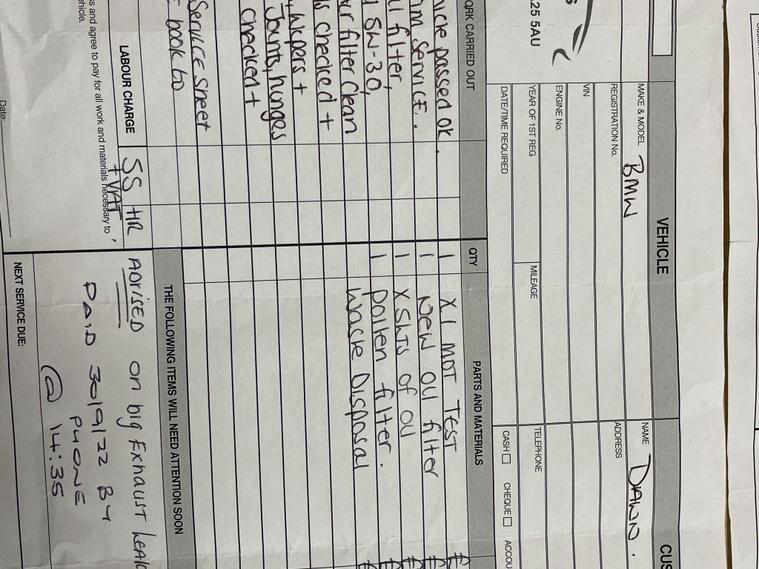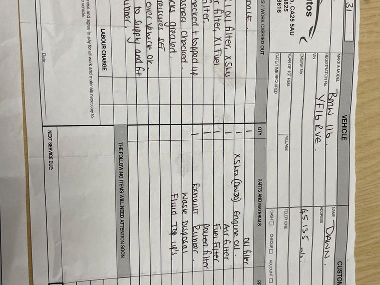 SERVICE HISTORY 12 MONTHS MOT.