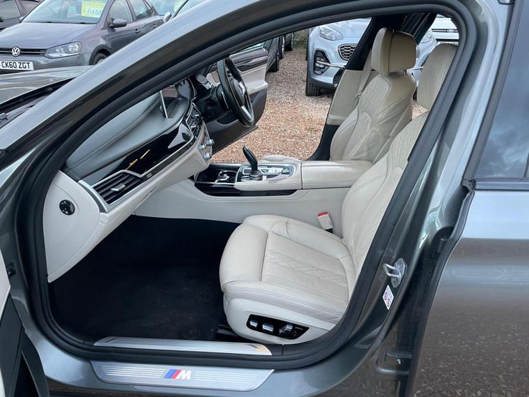 This 2018 BMW 7 Series 740Ld M Sport offers a refined driving experience with its powerful 3.0L diesel engine and four wheel drive system. As a Euro 6 compliant vehicle, it meets stringent emission standards. Inside, you'll find the luxurious BMW Individual Interior Trim Finisher in Piano Black, complemented by heated seats for both front and rear occupants. Enjoy the convenience of an electric glass sunroof, automatic headlights activated by a rain sensor, and enhanced Bluetooth telephone preparation with wireless charging for your devices. The generous boot space ensures practicality for all your needs.The performance of this 740Ld M Sport is truly impressive, achieving 0-62mph in just 5.3 seconds. This swift acceleration, combined with the advanced features and the sophisticated M Sport trim, sets this BMW apart from other vehicles in its class. It represents a compelling blend of dynamic capability, advanced technology, and premium comfort, making it an exceptional choice for discerning drivers..
