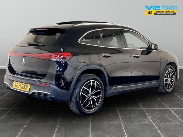 This 2021 Mercedes Benz EQA 250 AMG Line (Premium) presents a superb opportunity with its single owner and remarkably low mileage of just 26, 500 miles. As an electric vehicle, it boasts a 73 kWh battery offering a maximum range of 255 miles when new. Charging is convenient, with a full charge at home on a 7kW charger taking approximately 11 hours and 6 minutes, while rapid public charging can replenish the battery from empty to 80% in as little as 34 minutes. This EQA comes equipped with the Premium Package, which includes keyless entry, a panoramic sunroof, and wireless phone charging, alongside LED High Performance Headlights, Blind Spot Assist, the Mercedes Benz Sound System, and THERMOTRONIC automatic climate control.For peace of mind this vehicle has only had 1 registered owner and has completed a multi point AA dealer's website finance is also available.We are open 7 days a week and have more than 1500 cars to choose from.All our Euro 4 Petrol and Euro 6 Diesel vehicles meet the ULEZ standard.Vehicle specification can be found below. From time to time vehicles have manufacturer recalls notified. Please read our recall policy on our website for further information. Please be advised that the advertised electric vehicle (EV) listings may experience battery degradation over time, resulting in reduced performance and range compared to the original specifications. Factors such as usage patterns, environmental conditions, and charging practices can contribute to this degradation. While we strive to provide accurate information, the actual battery health and performance of each EV may vary. Customers are encouraged to conduct thorough research and consider the potential impact of battery degradation before making a purchase decision. We recommend consulting with a qualified technician or conducting a battery health inspection for further assessment..