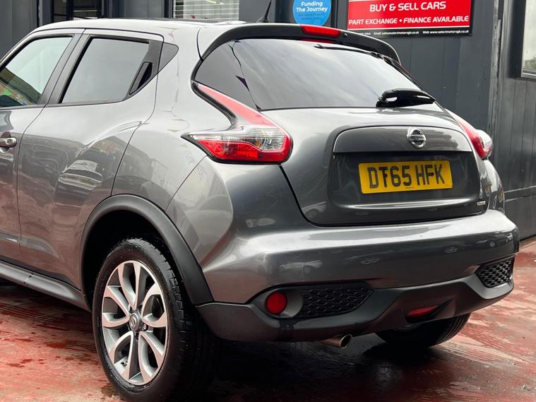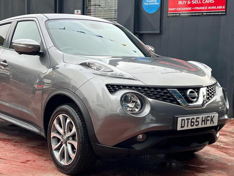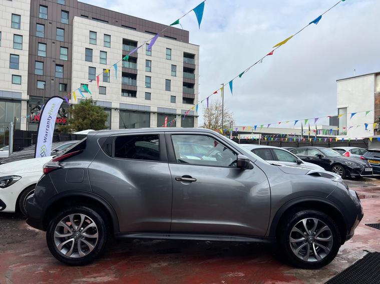 SELECT MOTORS (GB) DELIGHTED TO OFFER YOU THIS STUNNING NISSAN JUKE 1.6 TEKNA 5DR IN GREY COLOUR AND COMPLEMENTED WITH 17IN URBAN DESIGN ALLOY WHEELS. THIS VEHICLE HAS A HUGE SPECIFICATION WHICH INCLUDES THE FOLLOWING; SATELLITE NAVIGATION SYSTEM, 360 DEGREE VIEW CAMERA, BLUETOOTH CONNECTIVITY FOR PHONE AND MEDIA, DAB-FM/AM RADIO, CRUISE CONTROL WITH SPEED LIMITER, LANE DEPARTURE ASSISTANCE, FRONT HEATED SEATS, AUX SOCKET FOR MP3 PLAYER, AUTOMATIC CLIMATE CONTROL, LED DAYTIME RUNNING LIGHTS, TYRE PRESSURE WARNING SYSTEM. THIS VEHICLE IS ULEZ EXEMPT. WE ARE OFFERING NATIONWIDE DELIVERY ON ALL VEHICLE (PLEASE GET IN TOUCH DIRECTLY FOR DETAILS). WE CAN ALSO CONDUCT VIRTUAL VIEWINGS AND ACCOMMODATE ANY REQUESTS YOU MAY HAVE. ALL OUR ADVERTISED STOCK IS TEST-DRIVEN, INSPECTED BY OUR MECHANIC TO MAKE SURE OUR CUSTOMERS DRIVE AWAY WITH THE BEST QUALITY CARS. WE CAN PROVIDE A VIDEO WALK AROUND THIS VEHICLE UPON REQUEST., ALL OF OUR VEHICLES ARE SUPPLIED WITH A 3 MONTHS WARRANTY WITH EXTENDED OPTION. 12 MONTHS FREE AA BREAKDOWN COVER. FINANCE AVAILABLE..