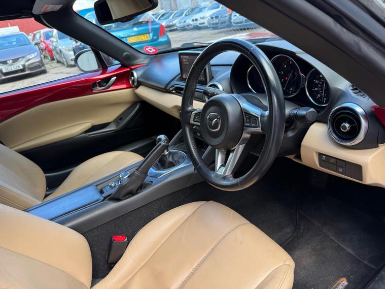 CLEAN INSIDE OUT, STARTS AND DRIVES WELL, READY TO DRIVE AWAY, NATIONWIDE DELIVERY AVAILABLE , PART EXCHANGE WELCOME, ALL VEHICLES ARE PREPARED, ALL DEBIT AND CREDIT CARDS ACCEPTED, CALL US FOR YOUR CAR VALUATION, ADDRESS - 62, MONTGOMERY STREET , BIRMINGHAM B11 1DU, Please Call 01215400495, For more cars visit our website dealer's website open 7 days a week 9:00 AM Till 7:00 PM, out of Hours Viewings Can Be Arranged , Drive Away Insurance , Part Exchange Welcome .. Thanks for Viewing. This 2015 Mazda MX-5 SKYACTIV-G Sport Nav offers an engaging driving experience with its responsive 1.5L petrol engine. As a Euro 6 compliant vehicle, it represents a more environmentally conscious choice. This Sport Nav model comes equipped with a comprehensive multimedia system featuring a premium branded sound system, perfect for enjoying your favourite music on the go. Integrated Bluetooth allows for seamless handsfree calls and audio streaming, while rear parking sensors provide added convenience and safety when manoeuvring. The smart keyless entry system means you can unlock and start the car without fumbling for keys, and heated seats ensure comfort during cooler drives.With a fuel economy of 47 mpg, this Mazda MX-5 is designed to be efficient, offering a cost effective driving experience. Its low CO2 emissions further highlight its appeal as a more sustainable option compared to many other vehicles in its class. The combination of its sporty design, advanced features, and economical performance makes this MX-5 a compelling choice for those seeking a well equipped and enjoyable car..