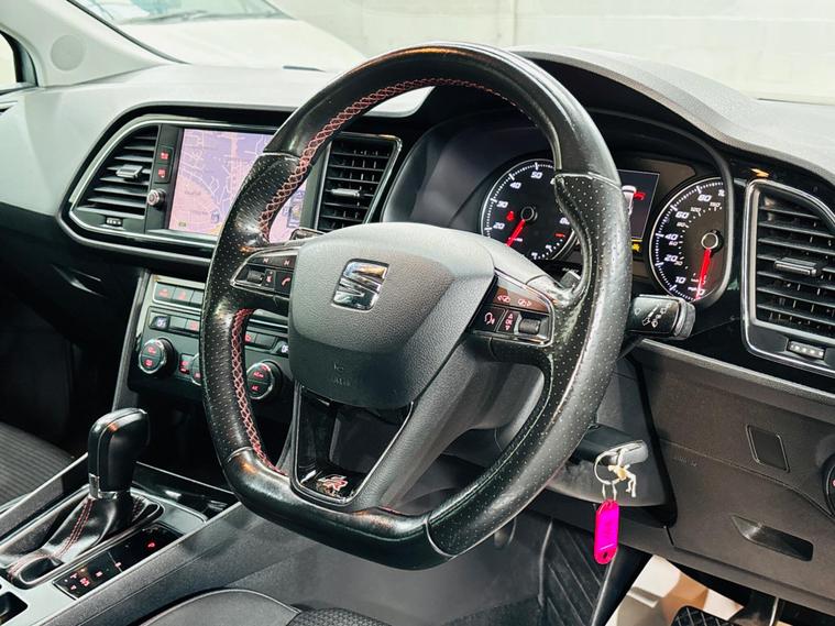 - Steering Wheel - Flat-Bottomed Perforated Leather with Red Stitching and FR Logo