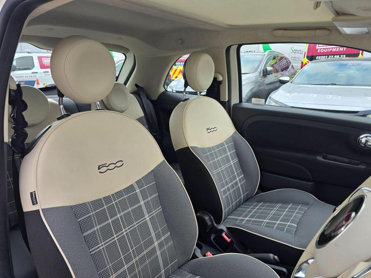 This 2017 Fiat 500 Lounge is presented with a clear vehicle history check, offering you peace of mind. This stylish city car features a 1.2 litre Euro 6 petrol engine, making it an economical choice for your daily journeys. Inside, you'll find comfortable front seats with a memory function, perfect for ensuring your ideal driving position is always ready. For added convenience, it includes rear parking sensors to assist with manoeuvring and a fixed glass roof with a sunblind, flooding the cabin with light. Stay connected and entertained with the 5 inch touchscreen radio, complete with AUX, USB, DAB, and Bluetooth connectivity.The Fiat 500 Lounge is designed to be both practical and enjoyable to own. Its low CO2 emissions mean it's kinder to the environment, and it also falls into a low insurance group, which can help to keep your running costs down. These factors, combined with its air conditioning for a comfortable drive in any weather, make this particular Fiat 500 a stand out option when compared to other similar vehicles..