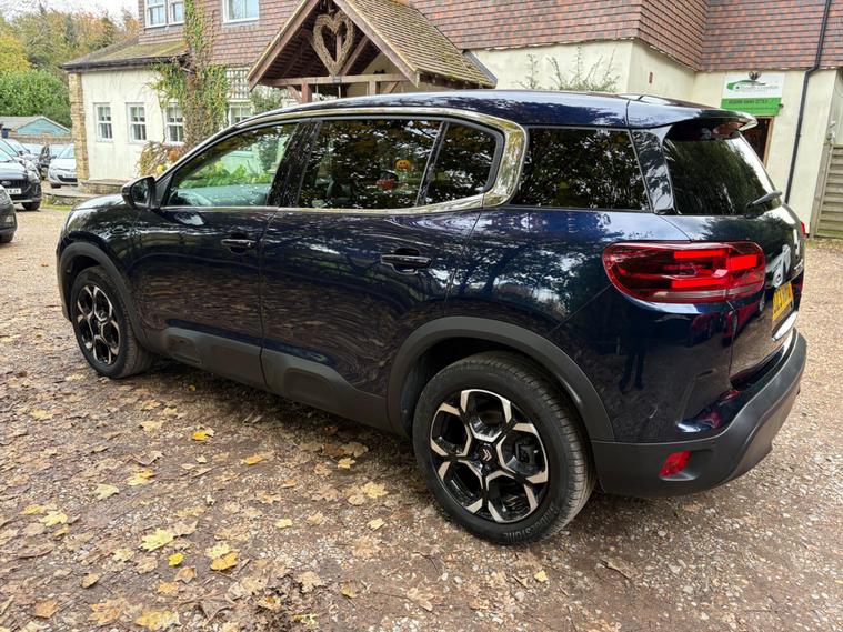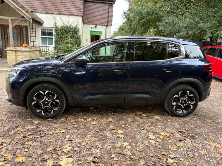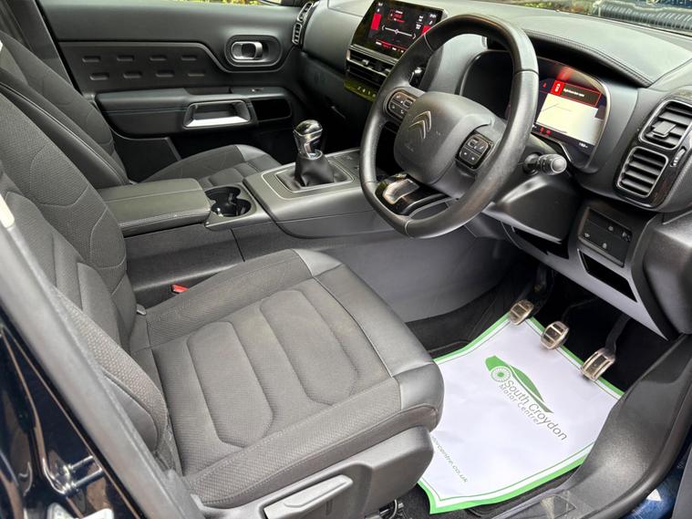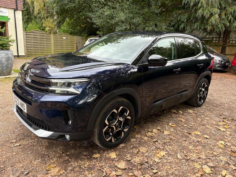This 2023 Citroen C5 AirCross Sense Plus is a superb example, having had only one owner from new. This stylish SUV is equipped with a responsive 1.2 litre petrol engine, meeting Euro 6 emission standards. Inside, you'll find the intuitive 10 inch touchscreen user interface, complete with Bluetooth connectivity, and Citroen Connect Play which seamlessly integrates your smartphone with Android Auto and Apple CarPlay. For enhanced visibility and safety, it features LED headlights, while the City Camera Pack provides front and rear parking sensors along with a rear parking camera to make manoeuvring effortless.Experience impressive efficiency with this C5 AirCross, boasting a highlight fuel economy of 49 miles per gallon, which is excellent for its class. You'll also appreciate the generous boot space, offering ample room for all your luggage and shopping needs. Furthermore, its low CO2 emissions highlight its environmentally conscious design, making it a more considerate choice compared to many other vehicles. The automatic dual zone climate control ensures a comfortable cabin temperature for all occupants, regardless of the weather outside..