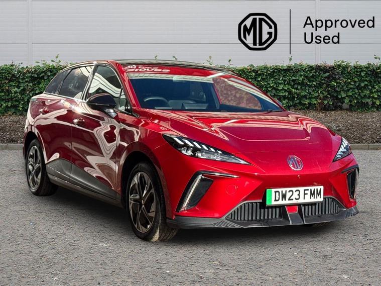 This 2023 MG MG4 Trophy Long Range electric vehicle presents an exceptional opportunity with only one owner and a remarkably low mileage of just 9680 miles. As a Trophy Long Range variant, this electric car boasts a substantial 64 kWh battery, offering a maximum range of 270 miles when new. Convenience is key with features like a wireless mobile phone charger, rear parking sensors for easier manoeuvring, and auto headlights that adjust to lighting conditions. You'll also appreciate the mobile phone Bluetooth key for seamless access and projector LED headlights with reflective technology for enhanced visibility.The MG4 Trophy Long Range stands out with its impressive battery capacity and a new range of 270 miles, indicating its capability for longer journeys. Its full charging time at home using a 7kW charger is approximately 10 hours, while rapid public charging can take you from empty to 80% in just 34 minutes, making it a practical choice for everyday use. Furthermore, this model offers a large boot space, providing ample room for luggage or shopping, further enhancing its practicality over similar vehicles..