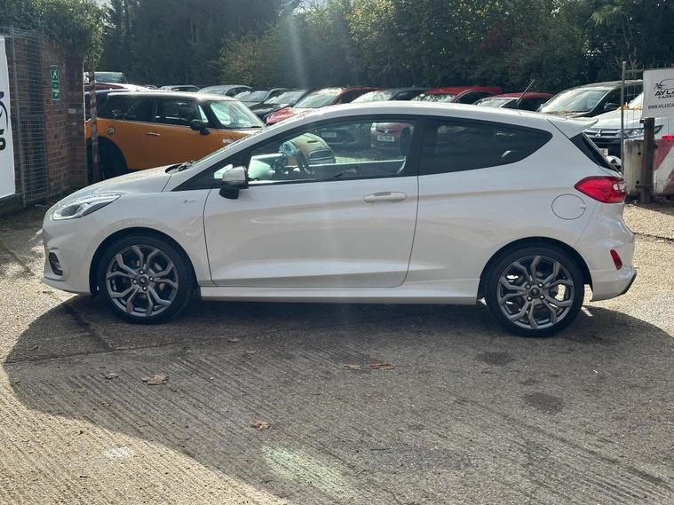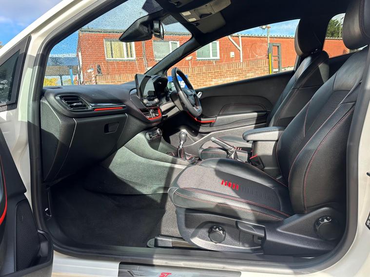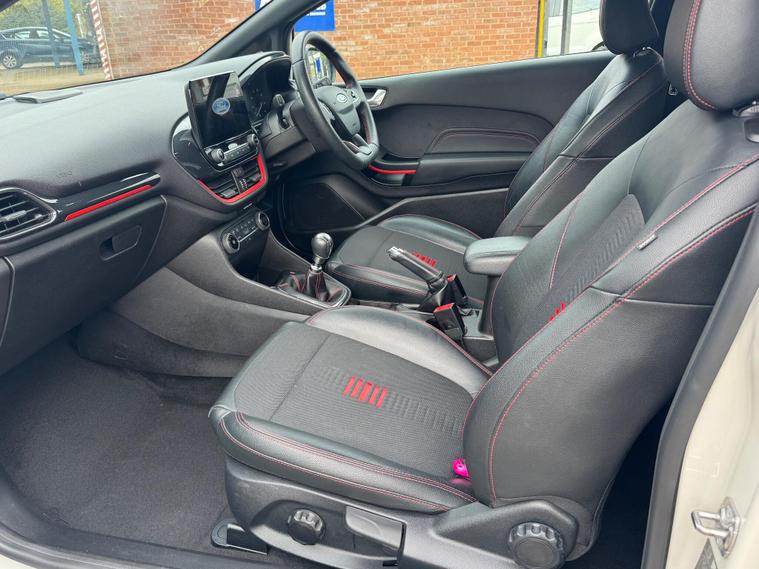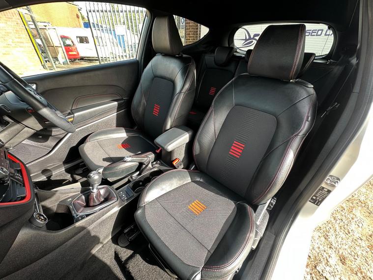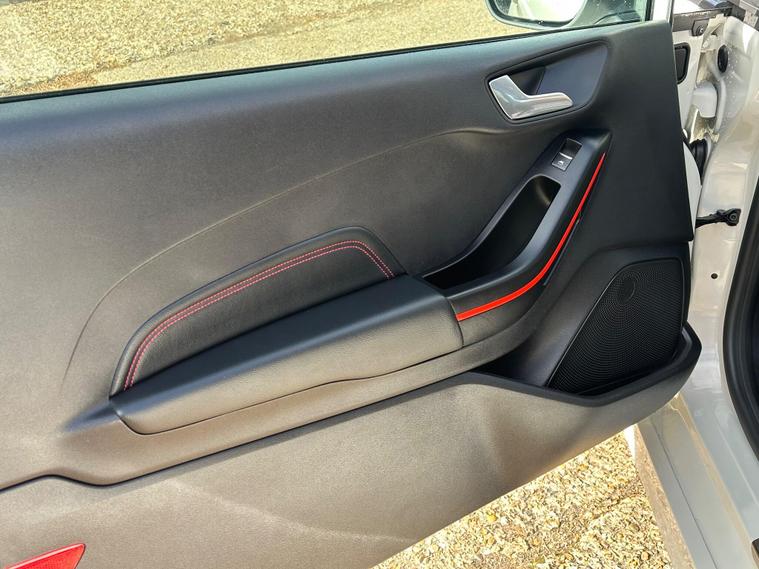 This 2019 Ford Fiesta T ST-Line X presents a compelling proposition for discerning buyers. With only 38, 000 miles on the clock, this Euro 6 compliant 1.0L petrol model offers exceptional value. Its provenance is further assured with a clear vehicle history check. Inside, you'll find the ST-Line X Red Pack, featuring partial leather upholstery with a striking black and red theme, complemented by a heated steering wheel and heated seats thanks to the Comfort Pack. The Ford KeyFree System allows for effortless keyless entry, while the Driver Assistance Pack includes adaptive cruise control for enhanced driving comfort. Full LED headlamps ensure excellent visibility in all conditions.This Ford Fiesta T ST-Line X stands out from similar vehicles due to its thoughtful combination of features and excellent condition. Its low CO2 emissions are a significant advantage, contributing to lower running costs. The 1.0L EcoBoost engine delivers brisk performance, achieving 0-62mph in just 9.0 seconds, demonstrating a lively and engaging driving experience that belies its economical nature. This particular model's low mileage for its age and comprehensive maintenance record indicate it has been well cared for, making it a reliable and attractive choice..