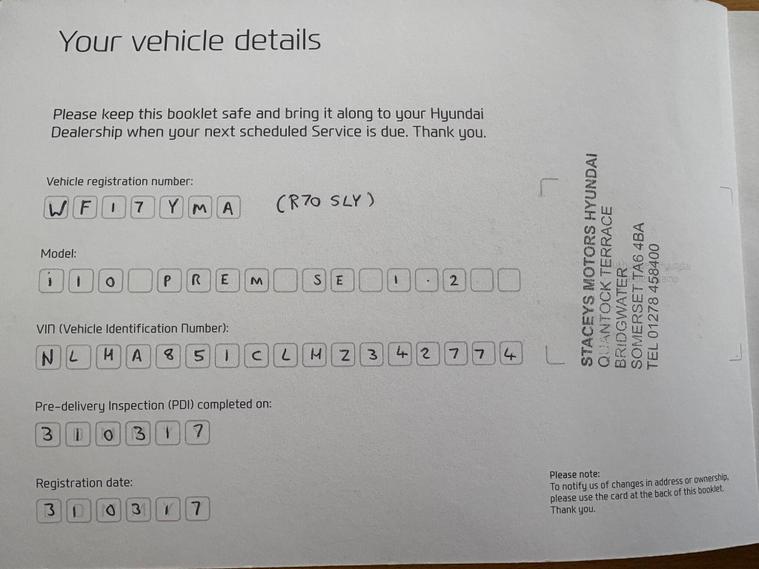 These little I10s make brilliant first cars (or just great value everyday runabouts).. Low £35 road tax, cheap insurance and great on petrol MPG...This example (Supplied originally by local Hyundai dealers Stacey's of Bridgwater)...drives exactly as it should with NO issues..Its the ''SE'' edition so lots of nice bits and pieces.... Ice Cold Air Con, Alloy wheels, Bluetooth, Heated front seats and steering wheel, DAB radio, Apple Car Play and a Sunroof !..... Cosmetically its a SERIOUSLY clean example ....We would never NORMALLY describe a used car as being ''immaculate'' or ''mint'' or any of the other daft words people use to describe used cars but in this case we really are struggling to find ANY kind of cosmetic blemish or mark ...Four excellent tyres with loads and loads of life left in them....Great service history....We have the original service book with services recorded in 2018/19/20/21/22/23 and 2025....Nice long advisory free MOT runs all the way through to August of 26... .Mileage can be verified using the excellent VOSA MOT History website...... Any questions always best to call or text and we will do our very best to help.. 01823552578 ...Credit and Debit Cards accepted with NO dealer's website Deliveries can easily be arranged, .