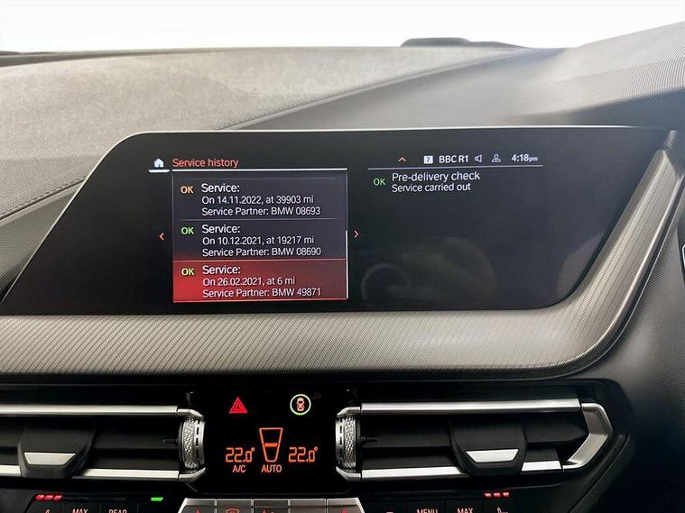 This 2021 BMW 1 Series 118i M Sport is a superb example, having been cherished by just one owner since new. This Euro 6 compliant model boasts a responsive 1.5 litre petrol engine, delivering an engaging 0-62mph in just 8.5 seconds. Inside, you'll find the luxurious Perforated Dakota Leather upholstery in Black with a distinctive Blue Highlight, complemented by the M Sport trim. For added comfort and convenience, this vehicle features electric front seat adjustment with driver memory, ensuring your perfect driving position is always set. The M Sport variant comes equipped with striking 19 inch M Double Spoke Style 552 Bi Colour alloy wheels, enhancing its sporty aesthetic. Long journeys are made effortless with Cruise Control featuring a Brake Function and Speed Limiter, and for your comfort, automatic two zone climate control keeps the cabin at the ideal temperature. Furthermore, this BMW 1 Series offers generous boot space, making it a practical choice for everyday life and weekend getaways, setting it apart from other vehicles in its class.For peace of mind this vehicle has only had 1 registered owner and has completed a multi point AA dealer's website finance is also available.We are open 7 days a week and have more than 1500 cars to choose from.All our Euro 4 Petrol and Euro 6 Diesel vehicles meet the ULEZ standard.Vehicle specification can be found below. From time to time vehicles have manufacturer recalls notified. Please read our recall policy on our website for further information..