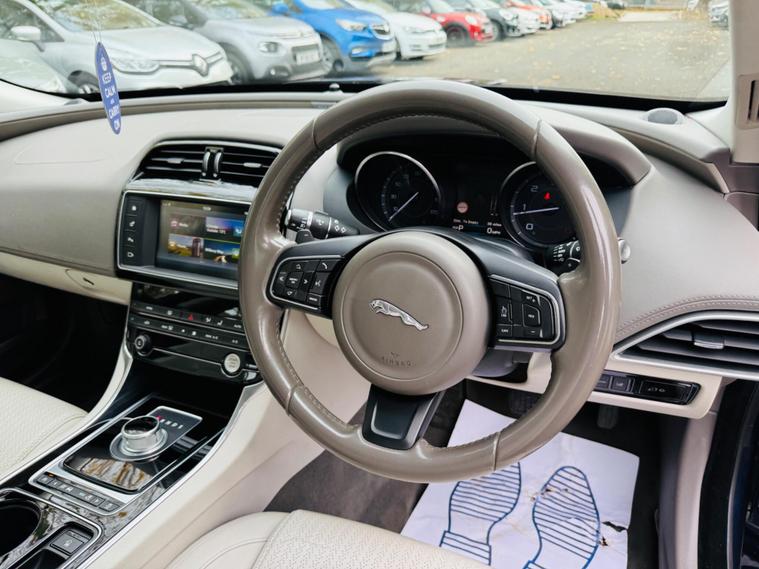 BLUE, SERVICE HISTORY, FINANCE AVAILABLE, NAVIGATION SYSTEM, PARKING CAMERA, LEATHER SEATS, ONLY ONE FORMER KEEPER, SPARE KEY, PRIVACY GLASS, START/STOP, CRUISE CONTROL, ULEZ COMPLIANTSUPERB DRIVE, VERY ECONOMICAL, ALLOY WHEELS, CLIMATE CONTROL, VERY WELL LOOKED AFTER, VERY CLEAN IN AND OUTWith only one owner and a remarkably low mileage of 52030 miles for its 2016 registration, this Jaguar XE d Portfolio presents a superb example of refined motoring. This Euro 6 compliant vehicle boasts a clear vehicle history check and an MOT valid until October 2026, offering peace of mind. Its Portfolio trim level is complemented by a smooth 2.0L diesel engine and features such as concealed tailpipes, 17in aerodynamic alloy wheels, and Bi Function HID Xenon headlights with LED daytime running lights. Inside, you can enjoy the premium Meridian audio system and seamless Bluetooth telephone connectivity.This Jaguar XE d Portfolio stands out with exceptional fuel economy, achieving an impressive 69 mpg, which indicates it is more economical than many similar vehicles. Furthermore, its low CO2 emissions and low insurance group highlight its cost effectiveness for everyday use. These factors combined make this particular XE a sensible and appealing choice for discerning drivers..