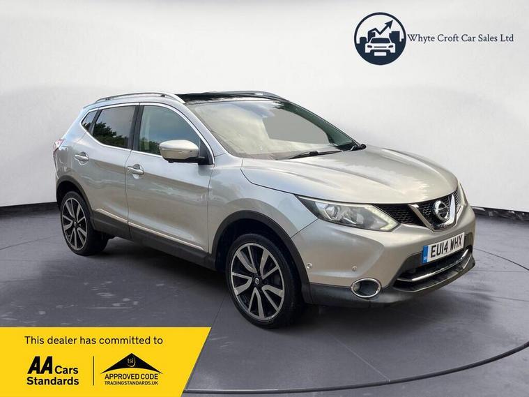 This 2014 Nissan Qashqai DIG-T Tekna offers exceptional value with its remarkably low mileage of just 69, 000 miles, a clear vehicle history check, and a strong fuel economy of 50 miles per gallon. This Tekna trim model is equipped with a 1.2 litre petrol engine and boasts impressive features such as Bi-LED headlights for superior visibility, heated front seats for comfort in all weather, and front parking sensors to aid manoeuvring.Further enhancing its practicality, this Qashqai includes an Around View Monitor providing a 360 bird's eye view and a rear view camera, making parking and navigating tight spaces effortless. Its low CO2 emissions and low insurance group highlight its cost effectiveness, making it a sensible choice for many drivers looking for a well equipped and economical vehicle that stands out from the crowd..