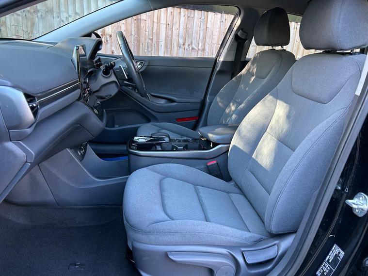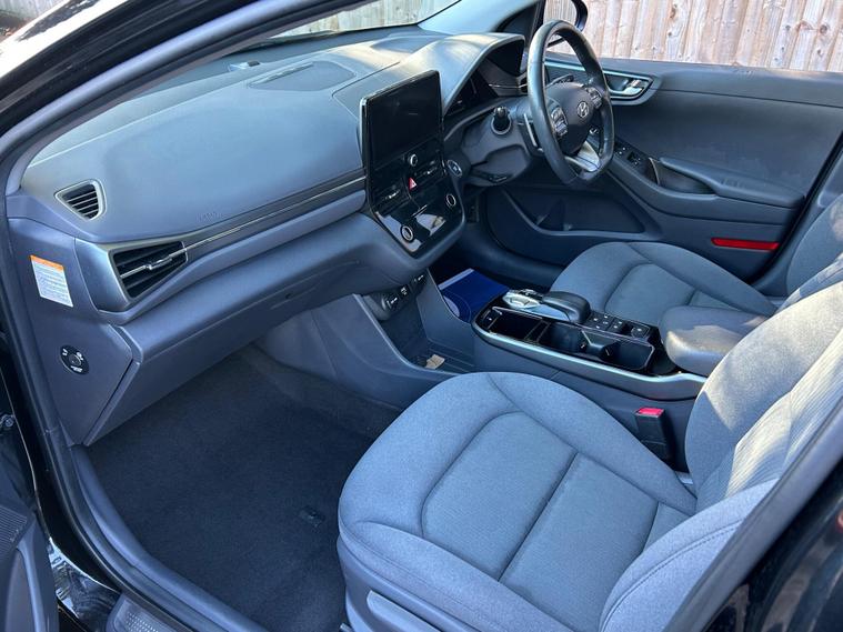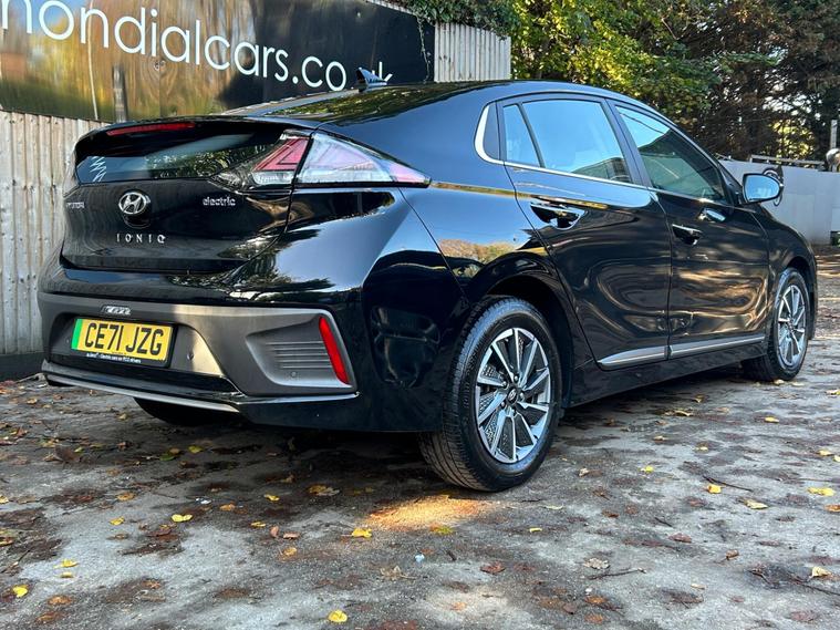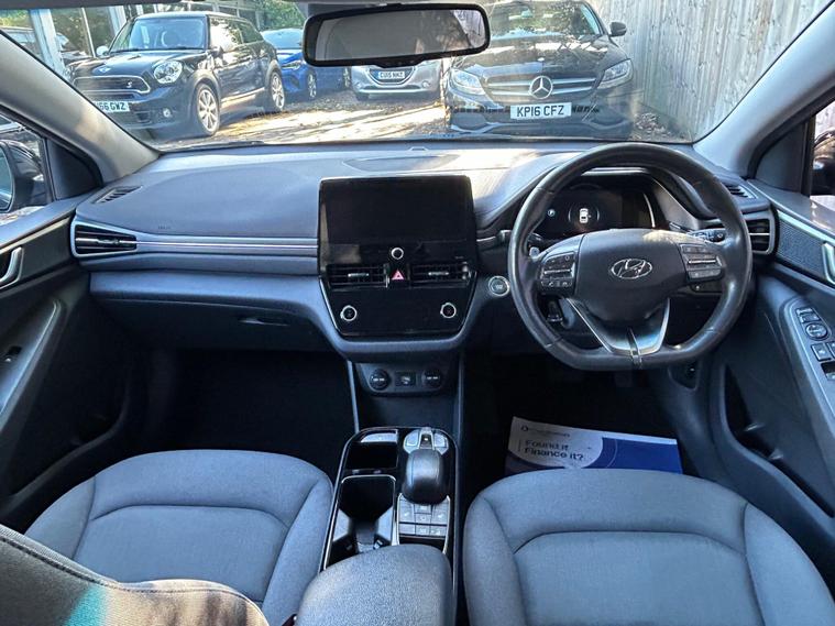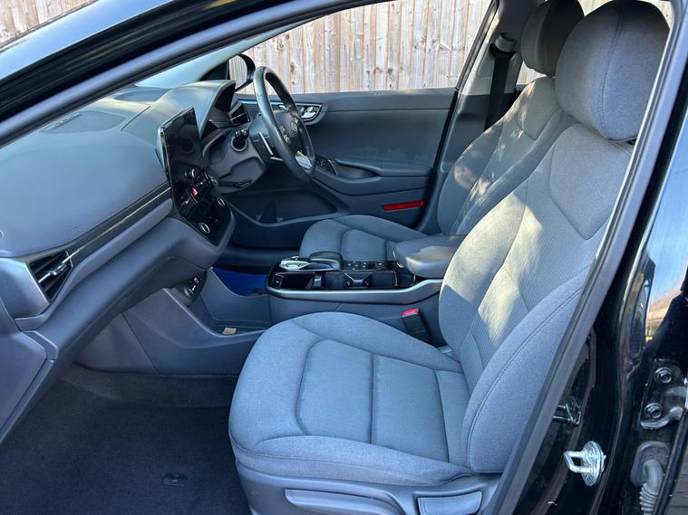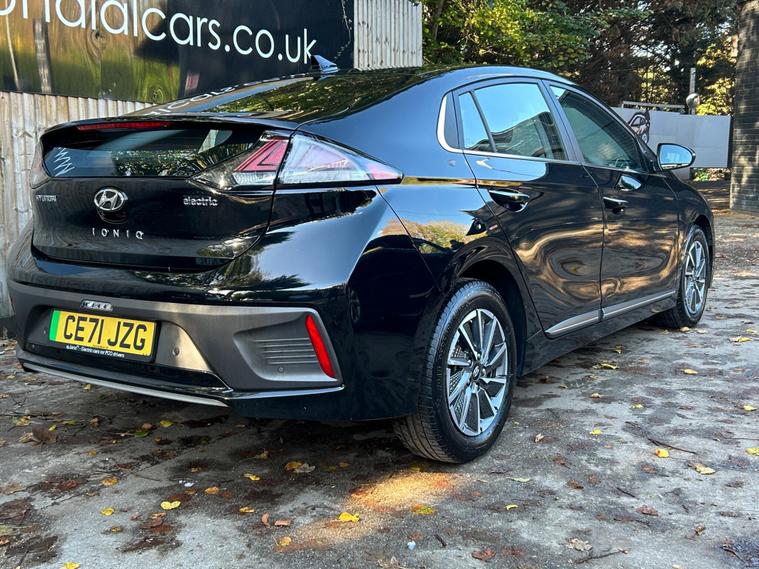 Discover this 2021 Hyundai IONIQ Premium, a superb electric vehicle offering an impressive battery maximum range of 193 miles when new. This model boasts a 43 kWh battery capacity, ensuring efficient and capable journeys. For your convenience, a full charge at home using a 7kW charger takes approximately 6 hours and 5 minutes, while rapid public charging can take you from empty to 80% in just 54 minutes.This IONIQ Premium comes equipped with a Smart Key for keyless entry and engine start, along with seamless phone connectivity through Android Auto and Bluetooth. Parking is made easier with a rear camera and guidance system, complemented by rear parking sensors. You'll also appreciate the generous boot space, perfect for all your luggage and shopping needs. These features collectively enhance the driving experience, setting this Hyundai IONIQ apart..