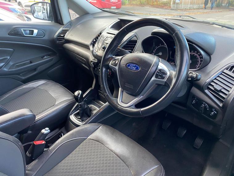 This FORD ECOSPORT features stylish and economical compact SUV finished in attractive Black colourway with smoked alloys, New timing belt fitted by our workshop, Road tax band D at 165 pounds per year, October 2026 Mot, Top spec including partial leather interior, Parking sensors, CD with Bluetooth/Dab/USB/Aux, Climate air con, Heated front screen, 4 E/windows, Remote c/locking, Multi airbags, HPI clear with certificate, No admin fees to pay, All Included in the price is a 12 month warranty with the first month given as unconditional, and then a further 11 months covering the most major parts, driveaway insurance available (Ts & Cs apply).