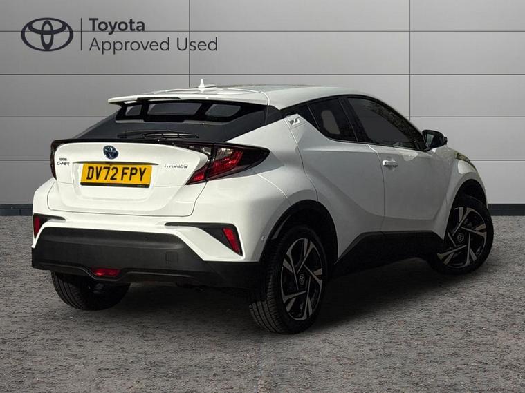 Boasting exceptionally low mileage for its age, this 2022 Toyota C-HR VVT-h Design is a truly special find, having had only one owner since new. This Euro 6 compliant, 1.8L petrol hybrid model offers an impressive 58 miles per gallon, making it an economical choice for your daily journeys. It comes with the reassurance of a 12 month warranty and MOT valid until October 2026, and as a Toyota manufacturer approved vehicle, you can be confident in its quality and condition. Inside, you'll discover the intuitive Toyota Touch 2 Multimedia System with an 8 inch display, complete with Android Auto, Apple CarPlay, and Bluetooth connectivity. The Design trim also includes auto headlights, dual zone automatic air conditioning for personalised comfort, and front and rear parking sensors with intelligent clearance sonar and automatic braking to assist with parking. Keyless entry and push button start add to the convenience.This Toyota C-HR stands out with its remarkably low mileage of just 6519 miles, indicating it has been lightly used and well cared for. Its low insurance group and low CO2 emissions further highlight its cost effectiveness and environmental consideration, setting it apart from many other vehicles in its class. These combined factors demonstrate how this particular C-HR offers superior value and a more refined ownership experience..