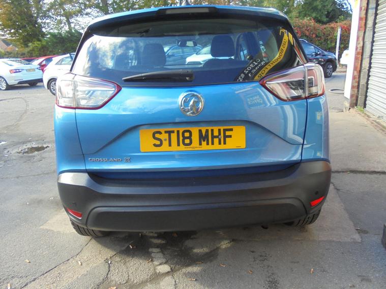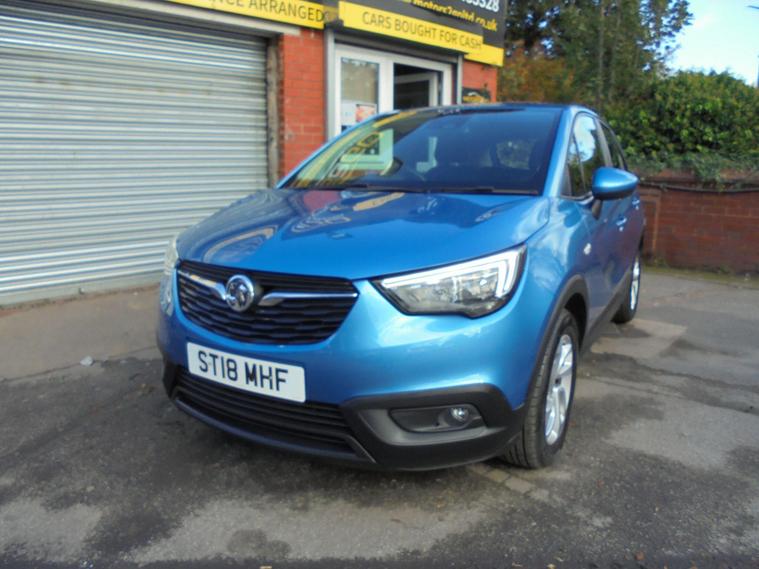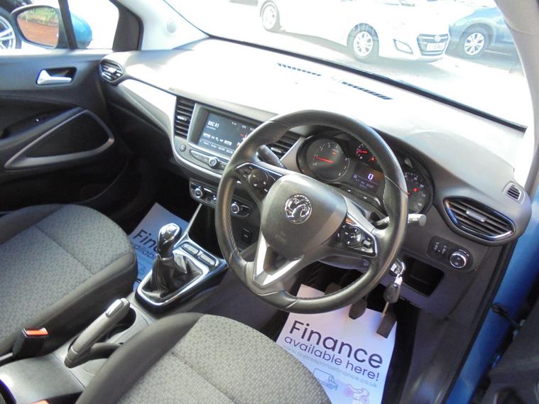 VAUXHALL CROSSLAND X 1.2 SE 5 DOOR EURO 6.ONE PREVIOUS OWNER FROM NEW IN STUNNING METALLIC BLUE WITH CONTRASTING CHARCOAL GREY CLOTH INTERIOR.GREAT SPEC WITH SAT NAV BLUETOOTH CONNECTIVITY, LANE ASSIST, REAR PARKING SENSORS, CRUISE CONTROL, AIRCON, 16 INCH ALLOY WHEELS AND 2 KEYS.MOT UNTIL OCTOBER 2026 AND FRESH SERVICE.12 MONTHS FREE AA BREAKDOWN COVER AND 15 MONTHS NATIONWIDE WARRANTY INCLUDED IN PRICE.FINANCE AVAILABLE P/X WELCOME..