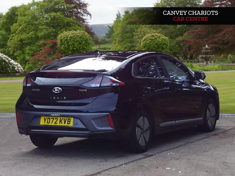 This 2022 Hyundai IONIQ h-GDi Premium is a superb example, having had only one owner since new. This stylish hatchback boasts a 1.6 litre petrol hybrid engine, meeting Euro 6 emission standards. It comes equipped with a Smart Key for keyless entry and engine start stop, a heated steering wheel, and heated front passenger and driver seats for enhanced comfort. You'll also appreciate the convenience of a wireless phone charging pad.The Hyundai IONIQ h-GDi Premium offers excellent running costs, achieving an impressive 63 miles per gallon, which is a significant advantage over many other vehicles. Its low CO2 emissions and low insurance group further contribute to its affordability. This model also features a large boot space, making it practical for everyday use and longer journeys. These highlights demonstrate how this IONIQ provides a more economical and convenient driving experience..