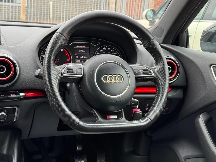 ***READY TO DRIVE AWAY***Boasting a full service history and an MOT valid until September 2026, this 2013 Audi A3 TFSI S line offers excellent provenance. With a clear vehicle history check and a recent service in September 2025, this 1.4 litre petrol model has covered a low mileage of 80, 000 miles for its age. It comes equipped with a multifunction, leather trimmed 4 spoke steering wheel, S line suspension for enhanced handling, and voice control for telephone functions. Enjoy your music with the MP3 and WMA compatible CD player, and benefit from the security of a Thatcham Category 1 immobiliser.This Audi A3 TFSI S line provides a compelling package, highlighted by its brisk 0-62mph acceleration in just 9.3 seconds, demonstrating its performance capabilities. The generous boot space ensures practicality for everyday needs and longer journeys, setting it apart from many vehicles in its class. These combined attributes, including its well maintained condition and desirable S line trim, make this A3 a strong contender for those seeking a refined and capable hatchback..