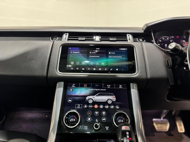 The exterior design exudes presence, enhanced by stunning 21-inch gloss black alloy wheels and the Dynamic Black styling package, creating a commanding and contemporary look. Step inside and you’re met with a truly luxurious cabin, featuring full black leather seats with electric adjustment, memory function, and heating for both front and rear passengers. For added comfort on warmer days, a cooling unit beneath the armrest ensures a refreshing driving experience, while the panoramic glass roof floods the interior with natural light, enhancing the sense of space and sophistication.Technology is at the heart of this Range Rover Sport. The digital dashboard provides crystal-clear driving information, complemented by a state-of-the-art infotainment system that integrates Apple CarPlay and Android Auto for seamless smartphone connectivity. The Meridian surround sound system delivers exceptional audio quality, ensuring every journey is accompanied by a rich and immersive soundtrack.Practicality meets luxury with features such as a powered folding tailgate, reversing camera, and front and rear parking sensors, offering effortless manoeuvrability and convenience. Combined with Land Rover’s renowned 4WD capability, this Range Rover Sport is just as capable off-road as it is elegant on the tarmac.The Range Rover Sport P400e HSE Dynamic Black represents the pinnacle of modern British craftsmanship — a stunning blend of luxury, innovation, and performance, finished beautifully in Santorini Black..