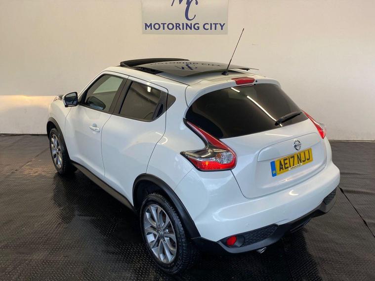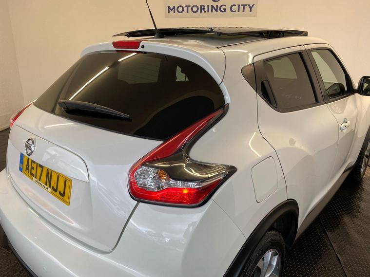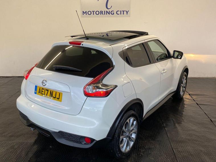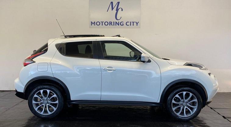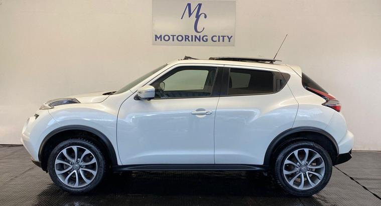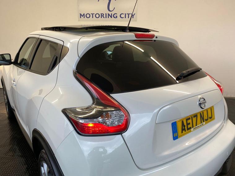 TOP SPEC -- SUNROOF - 360 CAMERA - LEATHER - LOW MILES - NEW MOT AND SERVICE AND MUCH MOREULEZ COMPLIANT|2 KEYS |PETROL| AUTOMATIC | KEYLESS ENTRY | XTRON | SUNROOF | PARKING SENSORS |360 CAMERA | REVERSE CAMERA | SPEED LIMITER | AUTO WIPERS | AUTO HEADLIGHTS | ELECTRIC MIRRORS | BLIND SPOT | AC | DRIVE MODE OPTIONS NORMAL, SPORT, ECO | BLUETOOTH | CD PLAYER | AUX | RADIO | NAVIGATION | HEATED DRIVER & PASSANGER SEATS | HPI CLEAR |FREE AA BREAKDOWN COVER WITH ALL PURCHASES|FINANCE & WARRANTY AVAILABLE|DELIVERY AVAILABLE NATIONWIDE | £99 ADMIN FEEDiscover this 2017 Nissan Juke Tekna, a remarkably well preserved example with an exceptionally low mileage of just 40, 000 miles for its age. This Euro 6 compliant 1.6 litre petrol model boasts a clear vehicle history check, offering peace of mind. Inside, you'll find a host of desirable features designed for comfort and convenience, including heated front seats, automatic climate control with a pollen filter, and an intelligent key with a push button start for effortless entry and ignition. This Tekna variant also comes equipped with a comprehensive safety pack, featuring Blind Spot Assistance and a 360 degree camera system, complemented by a colour reversing camera for enhanced parking assistance. These features, combined with an impressive fuel economy of 47 miles per gallon and a low insurance group, demonstrate how this Nissan Juke offers excellent value and a superior ownership experience compared to many other vehicles in its class..