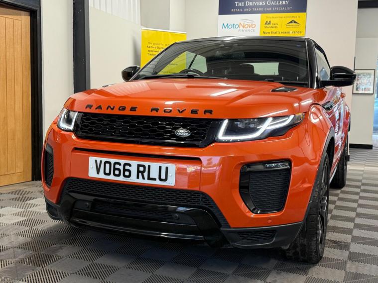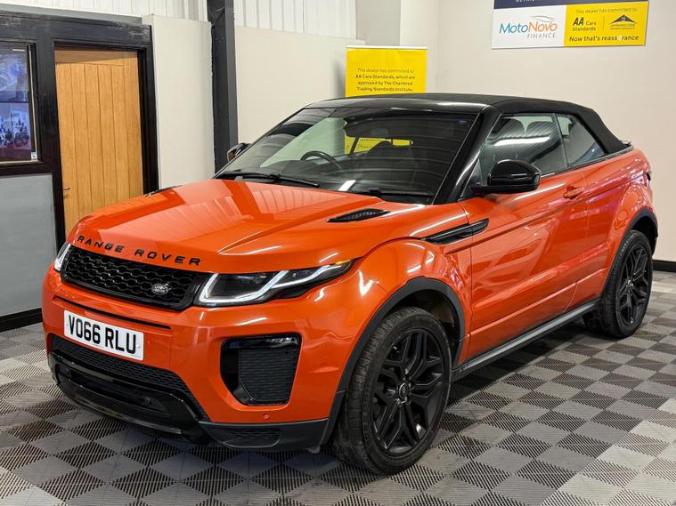 2016 Land Rover Range Rover Evoque 2.0 TD4 HSE Dynamic Auto 4WD Euro 6 (s/s) 2dr. Only 53, 150 miles, supplied with two keys and the full V5. The vehicle shows three entries on the Land Rover system (PDI and two services) and was maintained internally by the previous owner’s company, so no external service invoices are available. It has just passed its MOT with only an advisory on a tyre, which will be replaced prior to sale, and it will also receive a fresh service as part of our preparation.This Evoque Convertible is finished in premium Phoenix Orange metallic paint with a black hood and features a luxurious specification including 4-way driver and passenger powered seats with lumbar support, memory, and massage function. It benefits from InControl Touch Pro (Level 3) designed for the convertible model and four-wheel drive with Active Driveline. Other highlights include keyless entry, ski hatch, 20-inch five split-spoke ‘Style 508’ alloy wheels in satin black, darkened front fog and headlamp finishes with clear rear tail lamps, rear seat centre armrest, and a Santorini Black front sump trim finisher.Supplied with a 3-month comprehensive warranty, extendable for up to two years, this vehicle offers complete peace of mind. It will undergo a full health check and professional preparation prior to delivery. Nationwide delivery is available on request, and part exchange is welcome with instant valuations from our Buying Department.We are an AA Approved Dealer and Trading Standards endorsed, proudly listed on the Trading Standards website. Every retail vehicle includes 12 months free AA roadside breakdown and recovery, regardless of age, value, or mileage. With over 150 vehicles in stock across our two sites, we pride ourselves on providing quality cars and exceptional customer service. Reserve this vehicle today with a £250 fully refundable deposit.Authorised and regulated by the Financial Conduct Authority under FRN: 1014981. In.