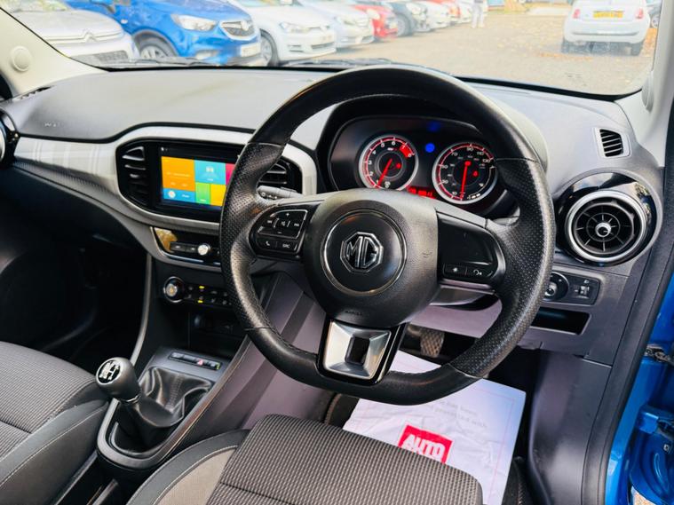 BLUE, SERVICE HISTORY, FINANCE AVAILABLE, NAVIGATION SYSTEM, PARKING SENSORS, ONLY ONE FORMER KEEPER, SPARE KEY, PRIVACY GLASS, START/STOP, CRUISE CONTROL, ULEZ COMPLIANT SUPERB DRIVE, VERY ECONOMICAL, ALLOY WHEELS, CLIMATE CONTROL, VERY WELL LOOKED AFTER, VERY CLEAN IN AND OUT.This 2019 MG MG3 VTi TECH Excite is a standout choice, boasting a clear vehicle history check and a MOT valid until October 2026, offering you peace of mind. This Euro 6 compliant 1.5L petrol model has been cherished by just one owner. Inside, you'll find comfort and convenience with air conditioning featuring a dust and pollen filter, and seamless connectivity through Bluetooth and Apple CarPlay. For added ease when parking, rear parking sensors are included, providing helpful assistance.The MG3 VTi TECH Excite offers a compelling package, with its 0-60mph acceleration in 10.4 seconds providing a responsive drive. This particular model also benefits from a low insurance group, which can help to keep your running costs down compared to many other vehicles. These factors combined indicate that this MG3 is a well maintained and economical option for your next car..