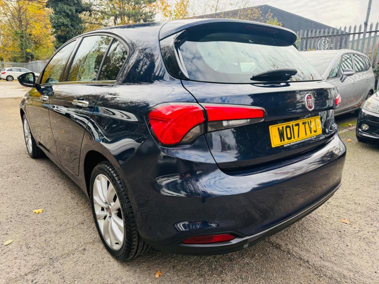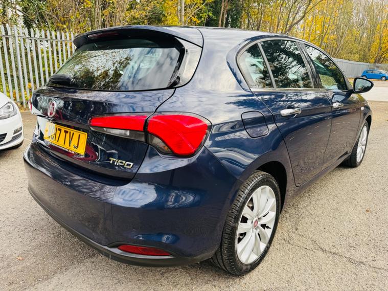 BLUE, SERVICE HISTORY, FINANCE AVAILABLE, SPARE KEY, PRIVACY GLASS, START/STOP, CRUISE CONTROL, ULEZ COMPLIANTSUPERB DRIVE, VERY ECONOMICAL, ALLOY WHEELS, CLIMATE CONTROL, VERY WELL LOOKED AFTER, VERY CLEAN IN AND OUT.Discover this 2017 Fiat Tipo MPI Lounge, a well maintained example that offers excellent value. This model is powered by a 1.4 litre petrol engine and meets Euro 6 emissions standards. It comes equipped with a rear view camera and rear parking sensors, making parking manoeuvres straightforward. The Visibility Pack ensures automatic headlights are activated when needed, and the automatic climate control keeps the cabin at your preferred temperature. Entertainment and navigation are handled by the VP2 radio, featuring a 5 inch touchscreen with AUX, USB, DAB, and Bluetooth connectivity.This Fiat Tipo stands out with its low insurance group, making it an economical choice for many drivers. You'll also appreciate the generous boot space, perfect for shopping trips or luggage. These features, combined with its efficient Euro 6 engine and user friendly technology, position this Tipo as a practical and appealing option compared to other vehicles in its class..
