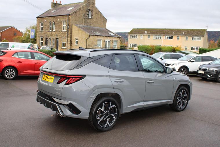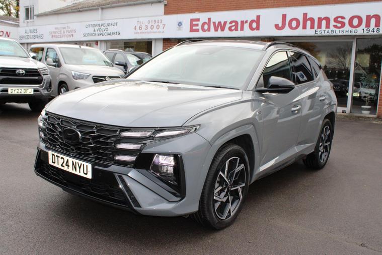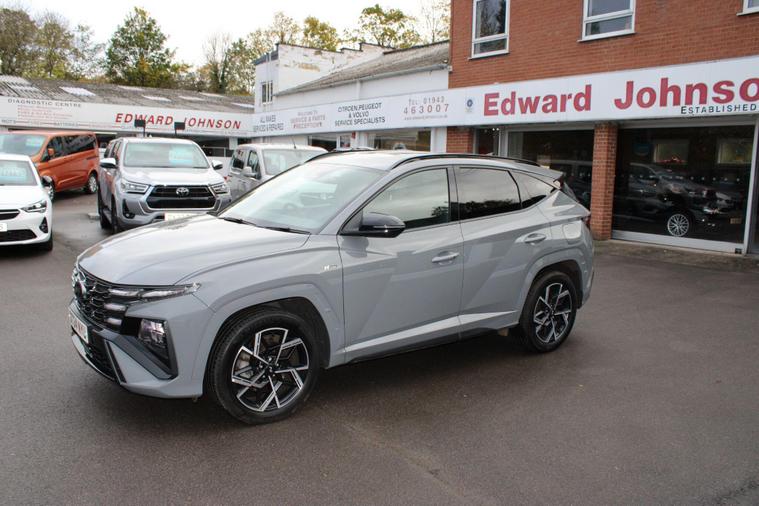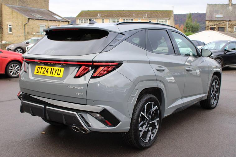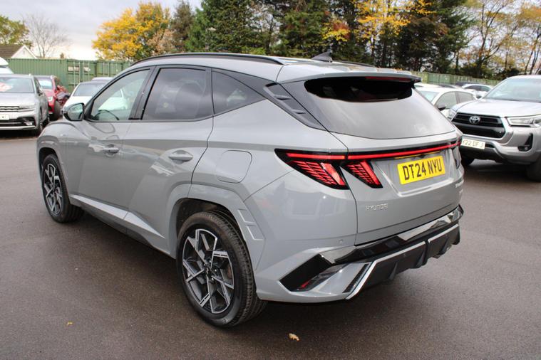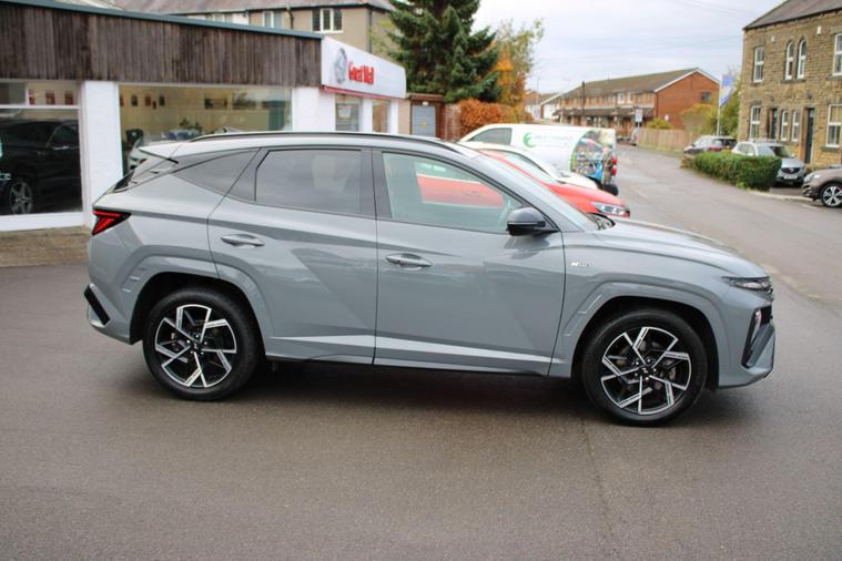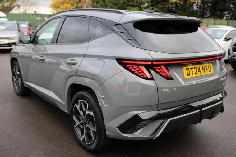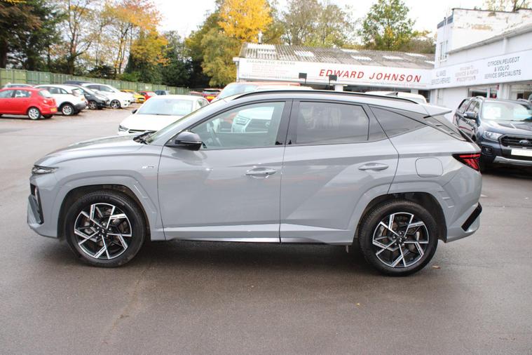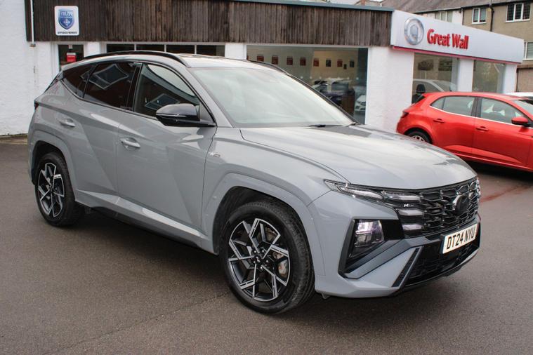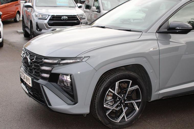 This 2024 Hyundai TUCSON T-GDi N Line presents a superb ownership proposition, having had only one owner from new. This stylish SUV boasts a 1.6 litre petrol hybrid engine, meeting Euro 6 emissions standards. Its N Line trim level enhances its sporty appeal, and you'll appreciate the convenience of keyless entry with a start-stop button, alongside front and rear parking sensors for effortless manoeuvring. Stay connected and entertained with Android Auto phone integration, and enjoy the comfort of a heated steering wheel on colder days. The striking LED headlights ensure excellent visibility.The TUCSON T-GDi N Line offers a compelling blend of performance and practicality. Its acceleration from 0-62mph in just 8.2 seconds demonstrates its responsive nature, outperforming many similar vehicles. Furthermore, its generous boot space provides ample room for all your luggage or shopping needs, making it a versatile choice for families and individuals alike. This particular model also benefits from a low insurance group, which can help to reduce your running costs, further enhancing its appeal as a sensible and enjoyable vehicle..