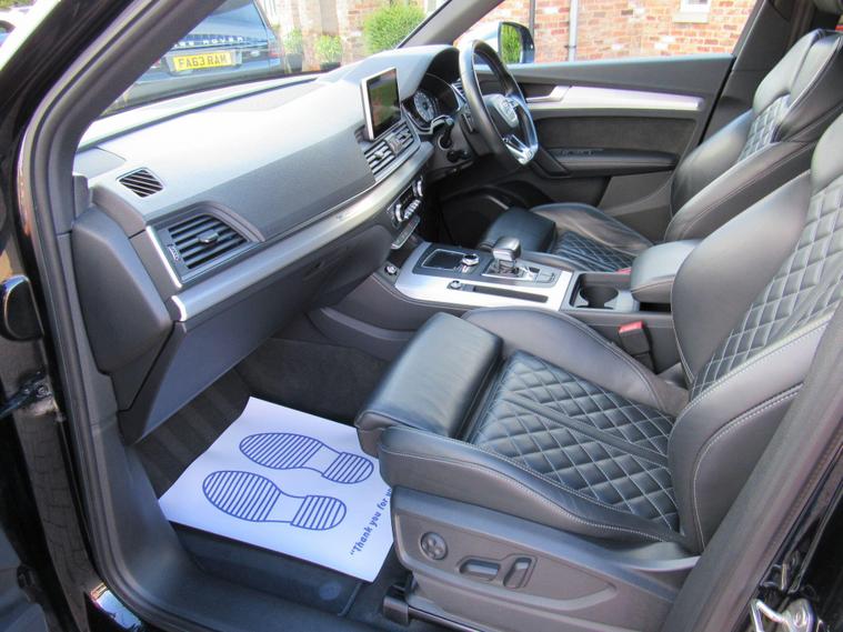 Hello & welcome to CMC Automotive. Here at CMC we are an approved AA trusted dealer. All vehicles come with nationwide warranty. We are delighted to offer this beautiful Audi SQ5 3.0 TFSI Quattro Euro 6. Only 2 previous owners from new with a full Audi service history record. 2 Keys. Finished in Brilliant black with heated black leather interior. Great specification & presented in excellent condition throughout. ALL OUR VEHICLES COME HPI CLEAR. AA HISTORY CHECKED. WE OFFER COMPETITIVE FINANCE, APPLY ONLINE. NATIONWIDE DELIVERY AVAILABLE. EXTENDED WARRANTIES AVAILABLE. FCA APPROVED DEALER. ICO COMPLIENT DEALER. PART EXCHANGE WELCOME..