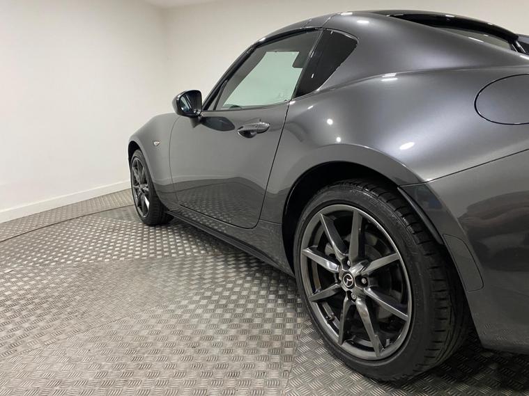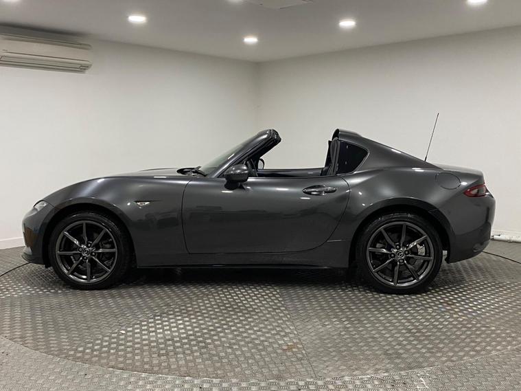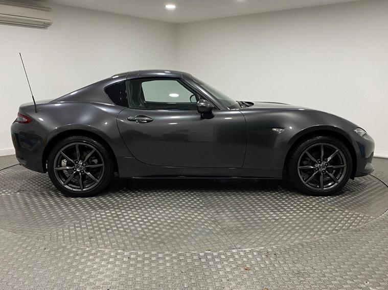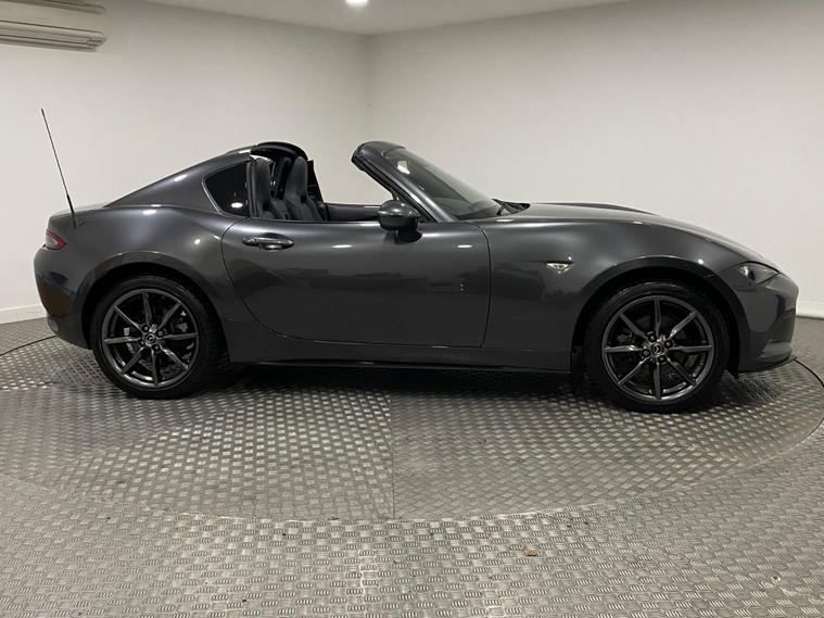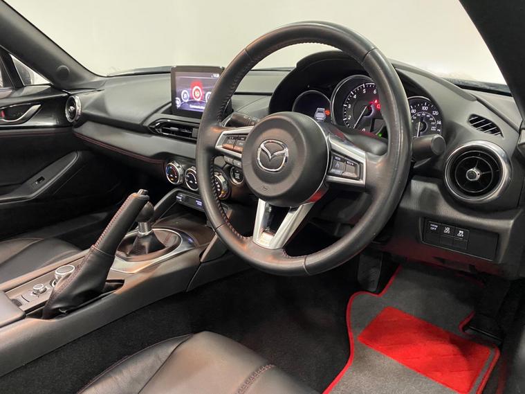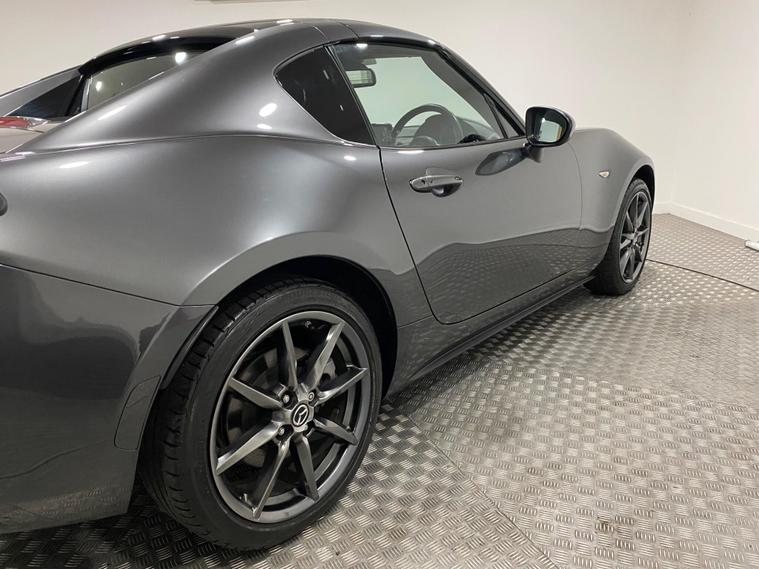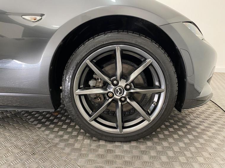This Mazda MX-5 has an exceptionally low mileage of just 19, 303 miles, coupled with services at 9-11-13-16-19k miles and an MOT valid until June 2026, offering peace of mind for its next owner. Finished in metallic grey with black leather interior and supplied with 2 keys. This Euro 6 compliant 2.0L petrol model features a sophisticated Sport Nav+ trim, enhanced with integrated Bluetooth, climate control air conditioning, rear parking sensors, smart keyless entry, and dusk sensing automatic headlights.The performance of this MX-5 RF is equally impressive, achieving 0-62mph in a brisk 6.8 seconds, demonstrating its sporty capabilities. Furthermore, its efficiency is highlighted by an impressive fuel economy of 41 mpg, alongside low CO2 emissions and a low insurance group, making it a more economical choice compared to similar vehicles. The last service was completed at 19, 000 miles, reinforcing its excellent provenance..