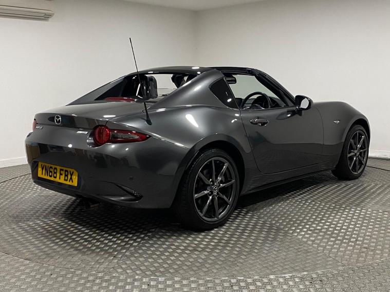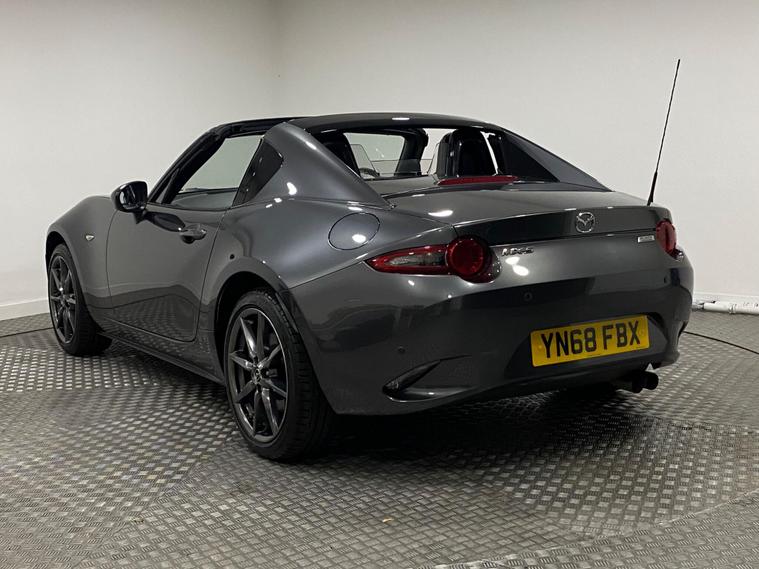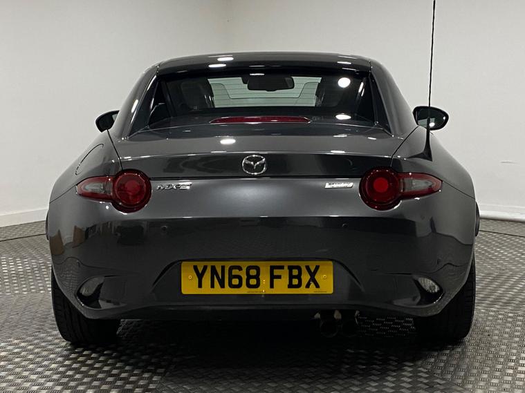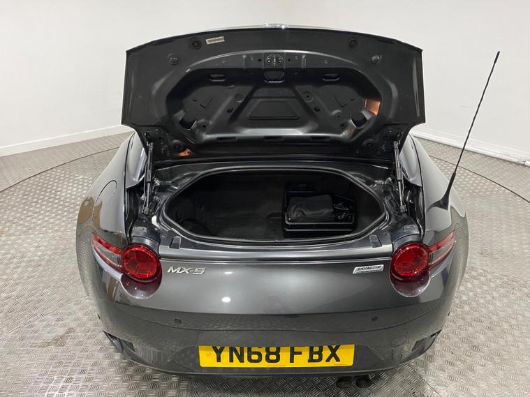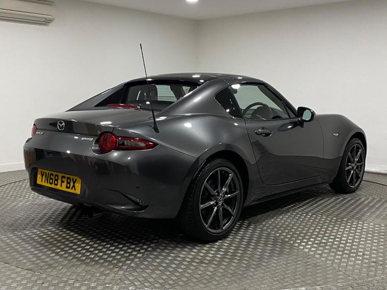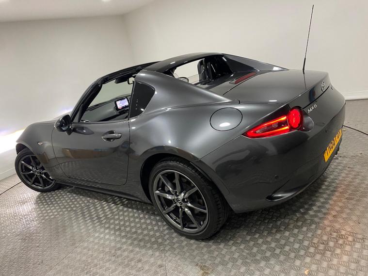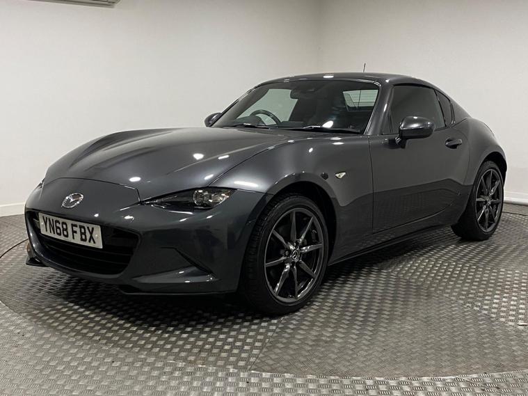 This Mazda MX-5 has an exceptionally low mileage of just 19, 303 miles, coupled with services at 9-11-13-16-19k miles and an MOT valid until June 2026, offering peace of mind for its next owner. Finished in metallic grey with black leather interior and supplied with 2 keys. This Euro 6 compliant 2.0L petrol model features a sophisticated Sport Nav+ trim, enhanced with integrated Bluetooth, climate control air conditioning, rear parking sensors, smart keyless entry, and dusk sensing automatic headlights.The performance of this MX-5 RF is equally impressive, achieving 0-62mph in a brisk 6.8 seconds, demonstrating its sporty capabilities. Furthermore, its efficiency is highlighted by an impressive fuel economy of 41 mpg, alongside low CO2 emissions and a low insurance group, making it a more economical choice compared to similar vehicles. The last service was completed at 19, 000 miles, reinforcing its excellent provenance..
