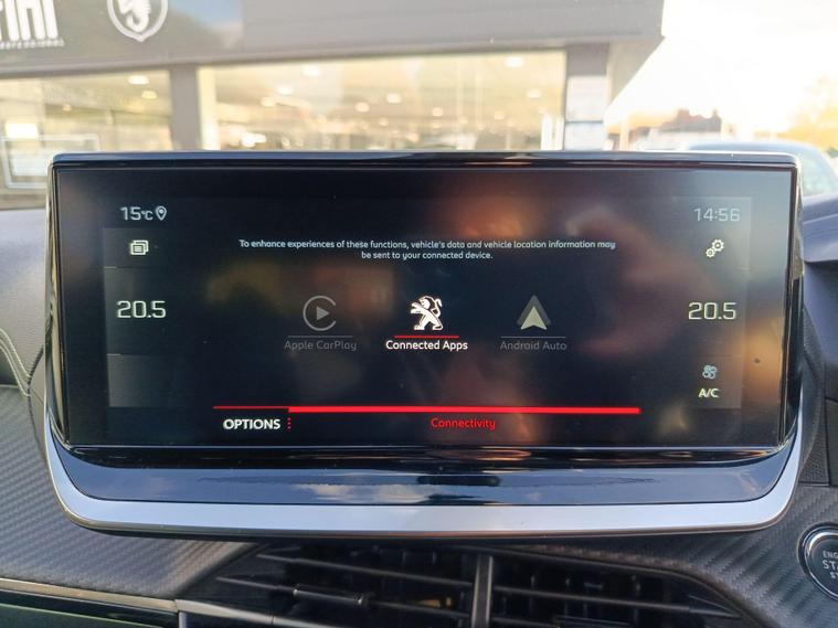 This 2023 Peugeot 2008 GT is a Peugeot manufacturer approved vehicle with only one owner from new. It features a responsive 1.2L petrol engine and meets Euro 6 emission standards. Inside, you'll find a host of convenient features including a Blind Spot Monitoring System with Blind Spot Assistance, Bluetooth connectivity for your telephone, and automatic air conditioning with pollen and carbon active filters for a comfortable cabin environment. Parking is made easier with front and rear parking sensors, and the Mirror Screen system offers seamless integration with Apple CarPlay and Android Auto.This Peugeot 2008 GT offers an impressive fuel economy of 48 mpg, demonstrating its efficiency compared to similar vehicles. Its low CO2 emissions also contribute to its environmentally conscious profile. For performance, it accelerates from 0 to 62 mph in just 9.4 seconds, providing a capable driving experience. These highlights indicate that this vehicle offers a superior combination of economy, performance, and advanced technology..