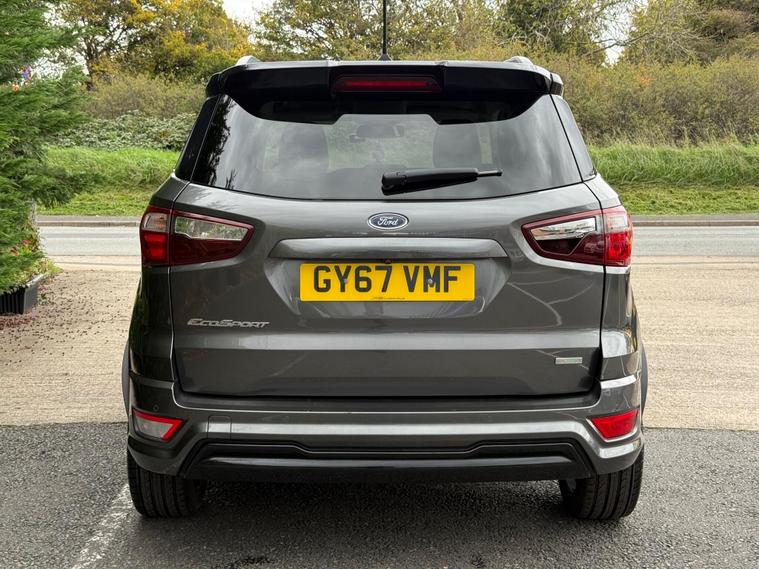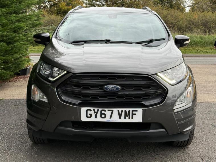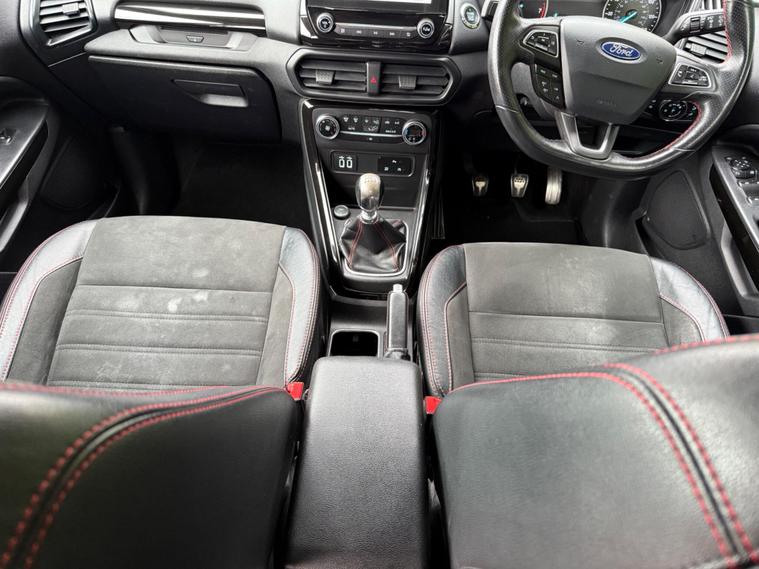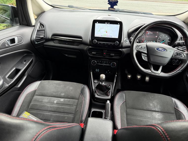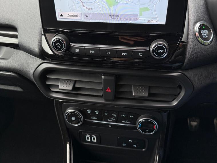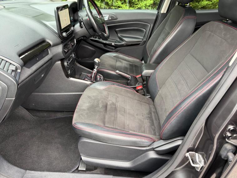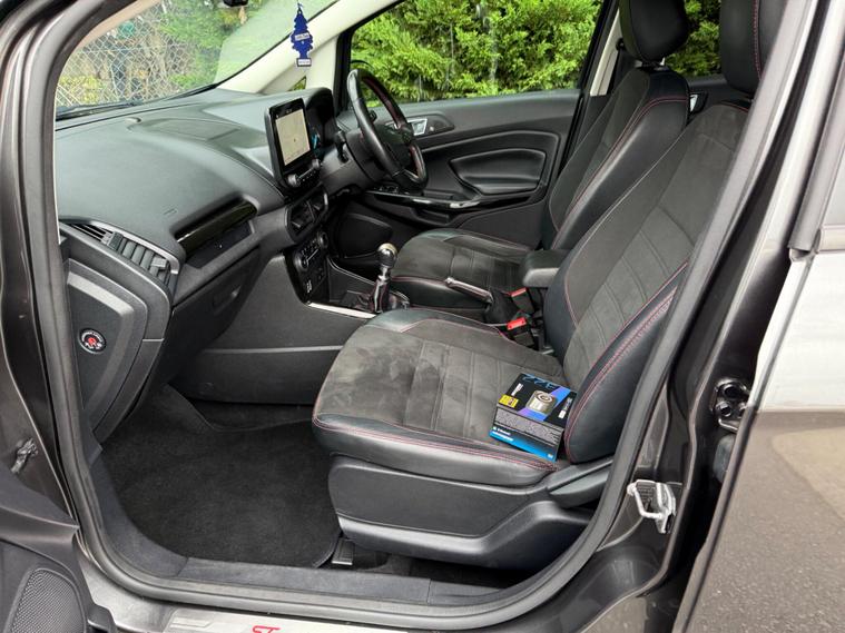 This 2018 Ford EcoSport ST-Line offers a compelling blend of style and practicality, featuring a responsive 1.0L petrol engine and meeting the Euro 6 emission standards. This particular model benefits from the Comfort Pack, ensuring cosy journeys with heated seats and a heated steering wheel. Navigating tight spots is made easier with front parking sensors and a rear view camera complemented by rear parking sensors. Stay connected and entertained with the Ford DAB Navigation System, which includes Ford SYNC3, Android Auto, Apple CarPlay, and Bluetooth connectivity, all managed through the Electronic Automatic Temperature Control for effortless climate control.Experience impressive efficiency with this EcoSport, achieving a highlight fuel economy of 53 miles per gallon, which, along with its low CO2 emissions, indicates a more economical and environmentally conscious choice compared to many other vehicles in its class. This combination of features and efficiency makes the Ford EcoSport ST-Line a well rounded option for everyday driving..