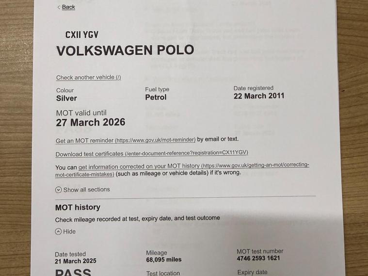 Here at Ezat Car Sales, we have a stunning 2011 Volkswagen Polo SE which presents a compelling proposition with its remarkably low mileage for its age, having covered just 69, 390 miles. It is in great condition for its age and mileage and starts faultlessly. It comes with 2 keys. This well maintained example has had only two owners and benefits from a partial service history, with its last service completed just recently on 24th October 2025 at 69, 390 miles. The vehicle is equipped with a 1.2 litre petrol engine and features air conditioning for your comfort. Furthermore, the MOT is valid until October 2026, offering peace of mind for the coming years.The Volkswagen Polo SE stands out with its low CO2 emissions and falls into a low insurance group, making it an economical choice for many drivers. These factors indicate that this particular Polo is likely to be more cost effective to run and insure compared to similar vehicles. A 6 month warranty is also included which covers almost all mechanical and electrical faults, providing an extra layer of security for your purchase and also 6 months breakdown cover along with the warranty.Feel free to give us a call to book a viewing. Deposits are welcomed. This car comes with warranted mileage, full vosa history, comes with all documents, part EXCHANGE welcome, all our cars come fully VALETED, inspected and test drives are welcome, all major credit/debit card and online payments accepted, FINANCE can be arranged, nationwide delivery available. Visit our website for more affordable cars dealer's website