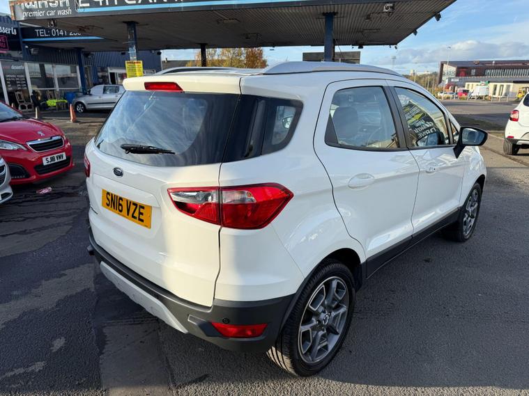 For sale is this sleek and efficient 2016 Ford EcoSport 1.5 TDCi Titanium 2WD finished in classic white, priced at £5695 with only 62249 miles. This compact SUV combines excellent fuel efficiency with Ford’s renowned build quality, making it a practical and stylish choice for everyday driving. Powered by the refined 1.5 litre TDCi diesel engine, it offers smooth performance and impressive economy. ULEZ compliant and costing just £35 a year to tax, this model is ideal for drivers looking for low running costs and dependable comfort.The Titanium trim provides a high level of specification as standard, including keyless push button start, climate control, cruise control, rear parking sensors, and alloy wheels. The cabin is designed for comfort and convenience, featuring a leather-wrapped steering wheel, electric windows, and a premium sound system with Bluetooth connectivity. The raised driving position and compact dimensions make it equally at home in the city or on longer journeys.This particular example has had only two previous owners and comes with a full service history, ensuring it has been well maintained throughout its life. It also includes two keys for convenience and peace of mind. The vehicle will be supplied with a 6 month Momentum mechanical warranty, 12 months AA Breakdown Cover, and a full 12 month MOT.Available now at JDM Glasgow Motors, 243 Glasgow Road, Glasgow, G73 1SU. For more information or to arrange a test drive, contact us on 01417602512 or email jdmglasgowmotors dealer's website Visit dealer's website to view our full range of quality used vehicles..