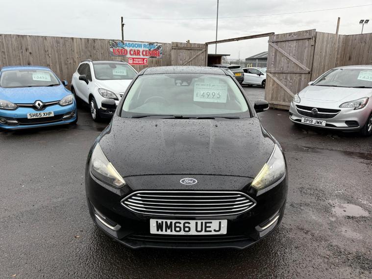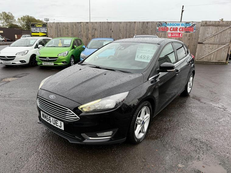 Presenting this sleek and efficient 2016 Ford Focus 1.5 TDCi Titanium Euro 6 (s/s) 5dr finished in gloss black, priced at £4, 995 with 106, 908 miles. This Focus is a superb example of Ford’s renowned hatchback, offering a perfect mix of comfort, technology, and low running costs. Powered by a refined 1.5 litre diesel engine paired with a smooth 6-speed manual gearbox, it provides strong performance, excellent fuel economy, and is fully ULEZ compliant. With only £20 annual road tax, it remains one of the most economical cars in its class to own and run.The Titanium specification brings premium features and comfort throughout, including Ford SYNC 2 infotainment with an 8-inch touchscreen, Bluetooth, DAB digital radio, voice control, and navigation compatibility. The cabin offers dual-zone climate control, automatic headlights and wipers, cruise control with speed limiter, keyless start, and a leather-trimmed multi-function steering wheel for a refined driving experience. The exterior is equally impressive, featuring stylish 16-inch alloy wheels, LED daytime running lights, chrome trim detailing, and body-coloured mirrors and door handles, giving the car a sophisticated yet sporty look.This particular Focus comes with Full Service History and 2 Keys, showing it has been well cared for throughout its life. The Ford Focus Titanium is widely praised for its excellent handling, comfort, and practicality, making it ideal for both daily commuting and long-distance journeys.Supplied by JDM Glasgow Motors, 243 Glasgow Road, Glasgow, G73 1SU, this vehicle includes a 6 month Momentum Mechanical Warranty, 12 months AA Breakdown Cover, and a 12 month MOT for complete peace of mind. For more information or to arrange a viewing, contact 01417602512 or email jdmglasgowmotors dealer's website Visit dealer's website to explore our full range of quality used cars..