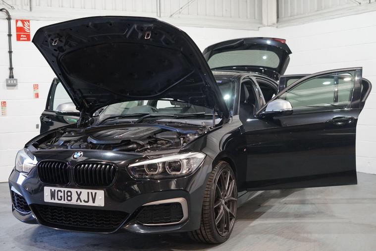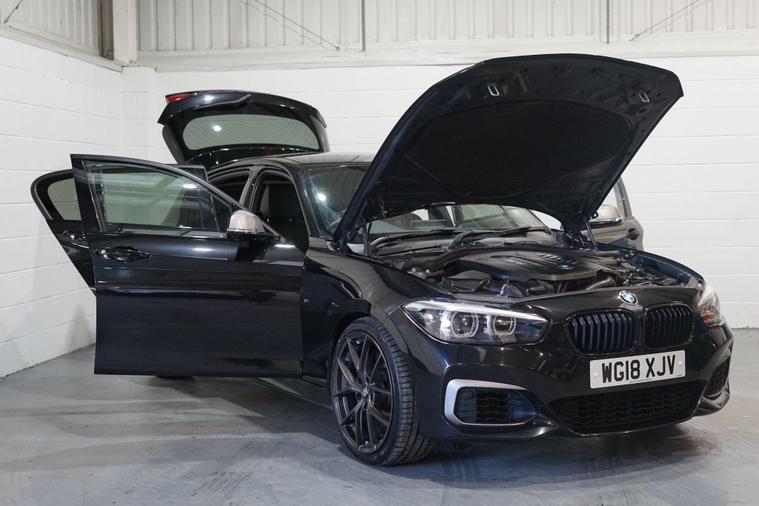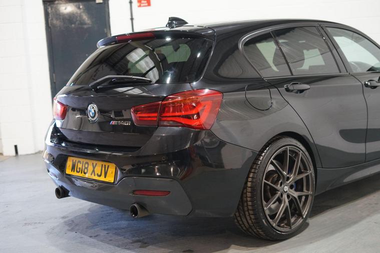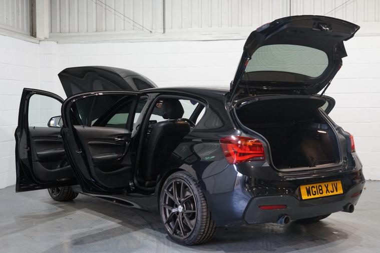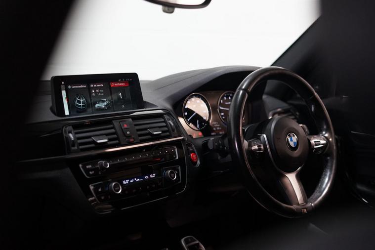 Viewing by appointment only.We are delighted to present this outstanding BMW 1 Series 3.0 M140i Shadow Edition Auto, finished in sleek Black Sapphire Metallic with luxurious Black Dakota leather upholstery. This high-performance hatchback combines everyday usability with exhilarating power from its 3.0-litre six-cylinder TwinPower Turbo engine, delivering a truly engaging drive with smooth automatic transmission and rear-wheel drive dynamics.As a Shadow Edition, this M140i features a sportier aesthetic with distinctive styling enhancements, complemented by a premium specification. Inside, the cabin is designed for both comfort and control, featuring electric front seats with driver memory, heated front seats, and folding, auto-dimming mirrors for everyday convenience.Entertainment and connectivity are first class thanks to the Harman Kardon loudspeaker system, BMW Professional Navigation, Online Entertainment, and seamless Apple CarPlay integration. The Sun Protection Glass adds refinement and comfort, while the high-gloss black interior trim with Pearl Chrome accents enhances the car’s premium feel.Park Distance Control with front and rear sensors provides ease of manoeuvring, while Cruise Control with braking function ensures effortless motorway driving.Powerful, refined, and well-equipped, this M140i Shadow Edition blends M Performance thrills with BMW luxury and everyday practicality—a rare and desirable model that stands out for both its capability and specification..