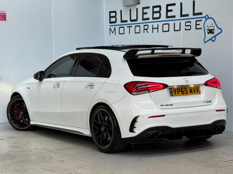 Bluebell Motorhouse is proud to present to you a stunning example of this Mercedes-Benz A Class 2.0 A45 AMG S Plus 8G-DCT 4MATIC+. This is not your average hot hatch — it’s a superhatch with supercar DNA. Under the bonnet lies a handcrafted 2.0-litre turbocharged four-cylinder engine producing a staggering 421bhp, making it the most powerful series-production four-cylinder engine in the world. Paired with the lightning-fast 8-speed dual-clutch transmission and Mercedes’ 4MATIC+ all-wheel-drive system, this A45 S delivers explosive acceleration and razor-sharp handling, with Drift Mode available for those brave enough to unleash it.This vehicle offers an incredible amount of options from factory, some of which include the AMG Performance Seats in Red and Black Leather with Hand Stitching, Panoramic Glass Sunroof, Burmester Surround Sound System, Dual 10.25” Screens for the MBUX Infotainment and Digital Cockpit, AMG Ride Control Adaptive Suspension, Apple CarPlay/Android Auto, AMG Aerodynamics Package, Keyless Entry and Push Button Start, Heated Front Seats, Ambient Lighting, Wireless Charging Pad, AMG Drive Select with multiple driving modes including Race, AMG Performance Exhaust, Blind Spot Monitoring, Lane Keep Assist, Traffic Sign Recognition, 360° Cameras with Park Assist, Adaptive Cruise Control, Electric Folding Mirrors, USB-C, Bluetooth, DAB Digital Radio and much more! If you’re after a specific feature, just get in touch — this car is loaded. With Full Service History and 2 keys, the current MOT expires on 15/05/2026. The car is finished in the Manufacturer colour of Cirrus White with Black AMG Styling Accents and sits on 19 inch AMG Cross-Spoke Forged Alloys in Matte Black. This car is in excellent condition throughout, with only the odd light mark or chip in line with age and mileage. It starts and drives exactly as it should — ferociously. Any inspection is welcome. Last serviced at 65, 564 miles on 14/08/2025. Comprehensive Warranty included and can be extended, with 12 months AA Breakdown cover also included. Low interest finance available.
