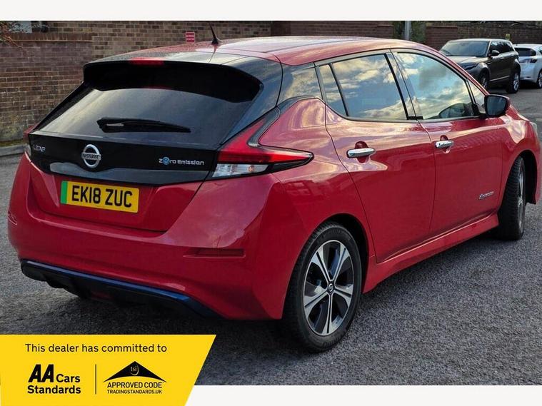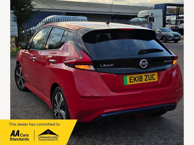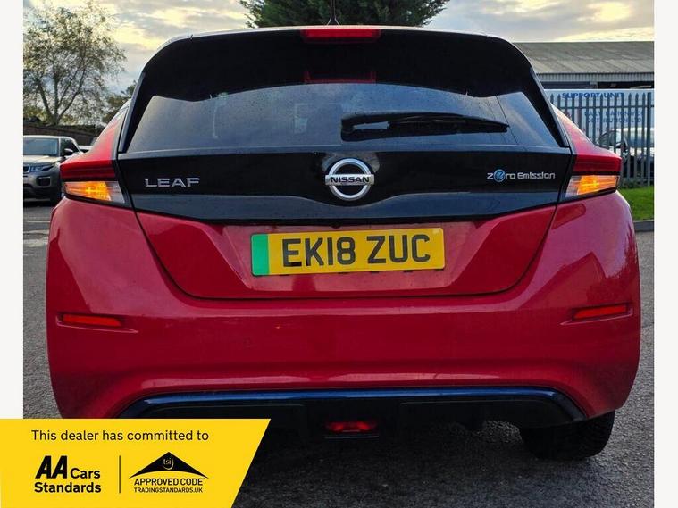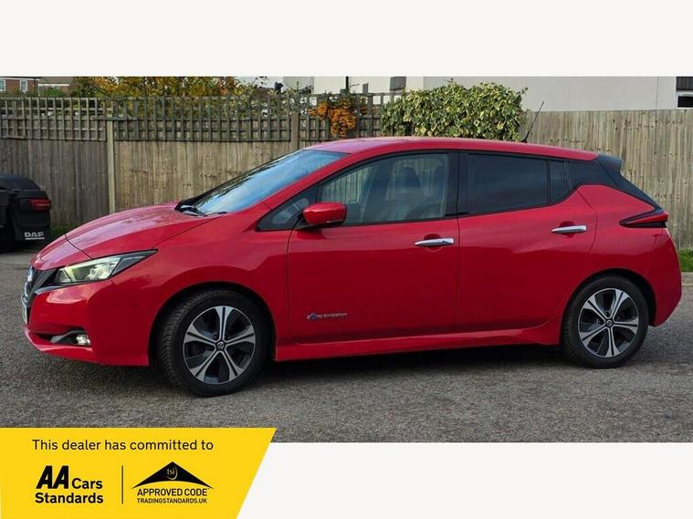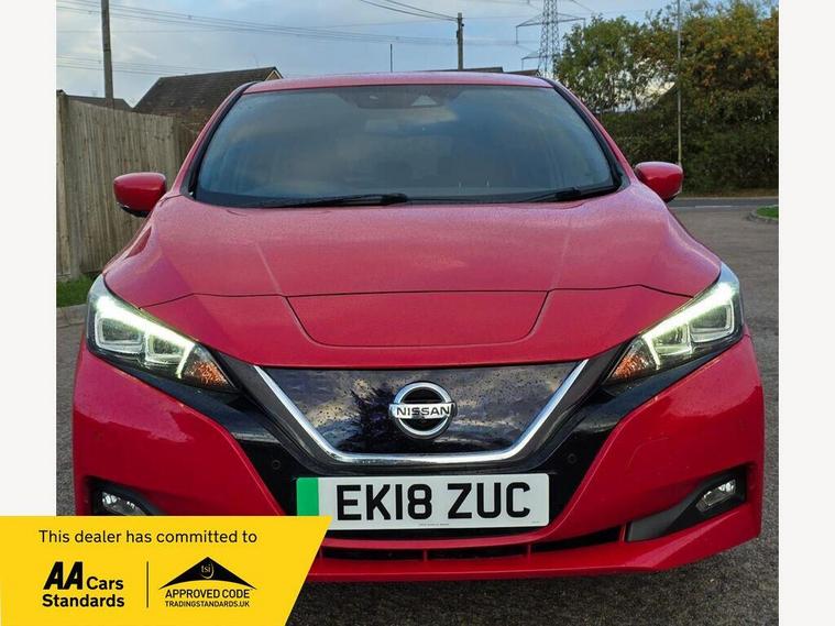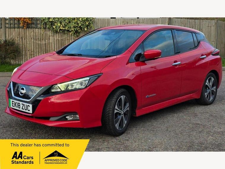 Discover this 2018 Nissan Leaf Tekna, a superb example of electric motoring. This Tekna model boasts a 40 kWh battery, offering a maximum range of 168 miles when new, making it ideal for both daily commutes and longer journeys. Charging is convenient, with a full charge at home taking approximately 7 hours and 30 minutes using a 7kW charger, while rapid public charging can take you from empty to 80% in just 1 hour and 20 minutes.This Leaf Tekna is equipped with a suite of intelligent features designed to enhance your driving experience. Enjoy peace of mind with the Around View Monitor including Moving Object Detector and 360 degree camera for effortless parking assistance. Intelligent Cruise Control adapts to traffic, while automatic headlights with a dusk sensor ensure visibility. Stay comfortable in all seasons with heated front and rear seats, and a heated steering wheel. The I Key and Push Button Start system offers keyless entry and ignition. Furthermore, the generous boot space provides ample room for all your luggage and shopping needs, setting this Nissan Leaf apart from others..