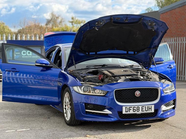 This 2019 Jaguar XE d R-Sport offers excellent value with its recent full service and a fresh 12 month MOT provided on purchase, ensuring peace of mind. This stylish saloon features a 2.0L Euro 6 diesel engine, a clear vehicle history check, and a 3 month warranty for added confidence. The R-Sport trim boasts 17 inch lightweight alloy wheels, Bi-function Xenon headlights with LED J Blade daytime running lights, and comfortable heated front seats.The XE d R-Sport is designed for an engaging driving experience, enhanced by an Optimal Shift Indicator to help you drive more efficiently. Its concealed tailpipes contribute to a clean and sophisticated appearance. Furthermore, this model falls into a low insurance group, making it a more economical choice for many drivers compared to similar vehicles..