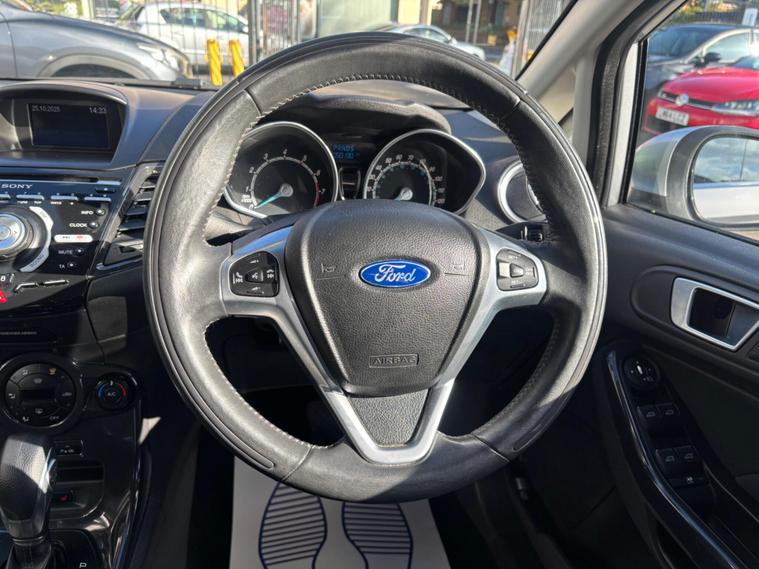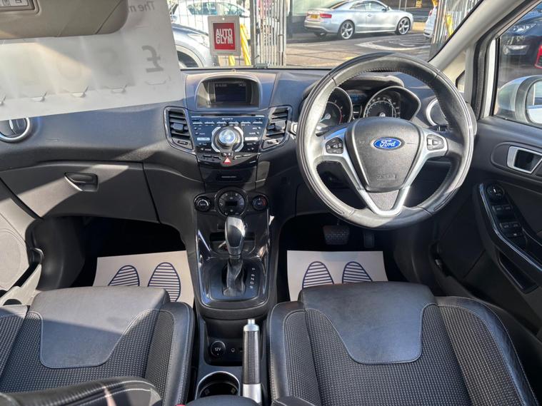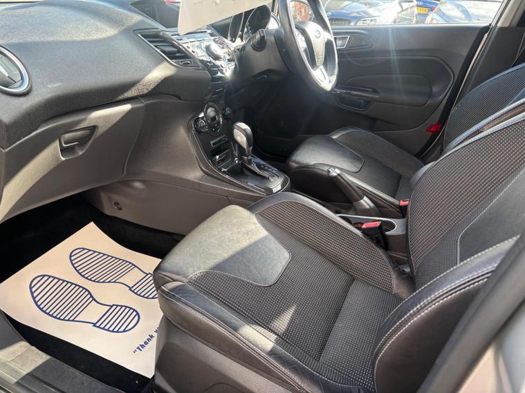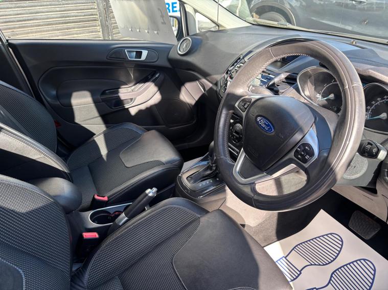 HERE WE HAVE ON SALE THE POPULAR FORD FIESTA 1.0T ECOBOOST TITANIUM X POWERSHIFT FINISHED IN METALLIC dealer's website WITH HALF LEATHER SEATS, HEATED SEATS, BLUETOOTH, MULTIFUNCTIONAL STEERING WHEEL, REVERSE CAMERA, ELECTRIC WINDOWS WITH ONE TOUCH, ELECTRIC AND HEATED ELECTRIC MIRRORS, HILL START ASSIST, HEATED FRONT WINDSCREEN, AIR CONDITIONING, FORD EASY FUEL CAPLESS REFUELLING, ISOFIX ATTACHMENT POINTS, USB AND AUX INPUT, FORD AM/FM CD AUDIO SYSTEM, REMOTE CENTRAL LOCKING, X2 KEYS....................THIS VEHICLE COMES WITH FULL SERVICE HISTORY WITH SERVICES AT 12350 MILES, 19118 MILES, 15095 MILES, 25827 MILES, 29618 MILES, 44490 MILES, 46422 MILES AND 48352 MILES MEANING THIS VEHICLE HAS BEEN MAINTAINED TO A VERY HIGH STANDARD................THIS VEHICLE WILL BE SERVICED AT POINT OF SALE.................TWO FORMER KEEPER...................THIS VEHICLE PRESENTS IN EXCELLENT CONDITION THROUGHOUT AND DRIVES LIKEWISE.................VIEWING ESSENTIAL...............FINANCE AVAILABLE ON REQUEST..