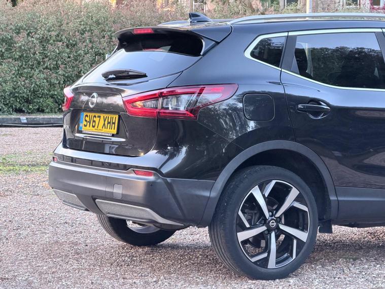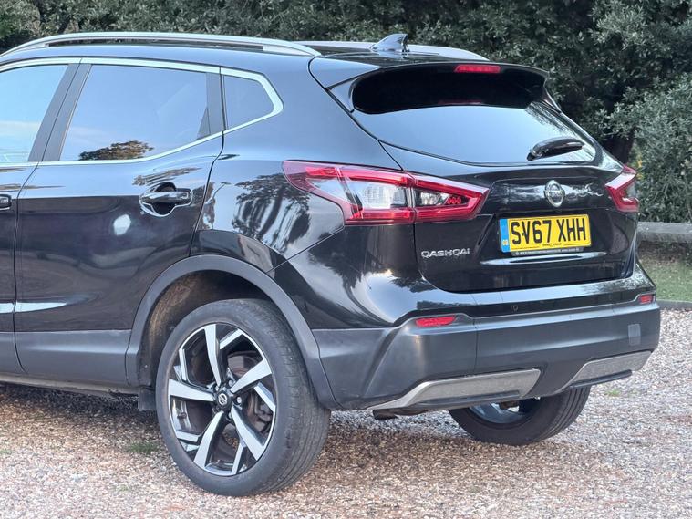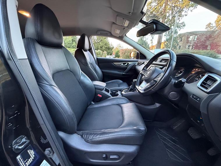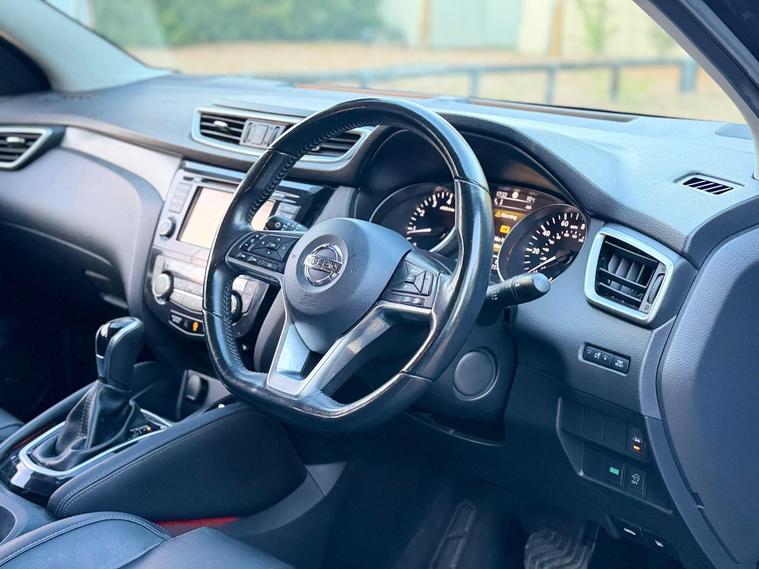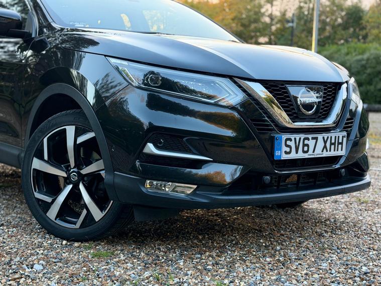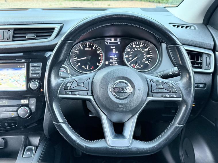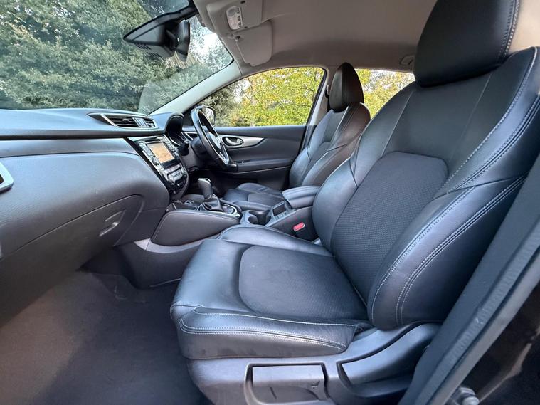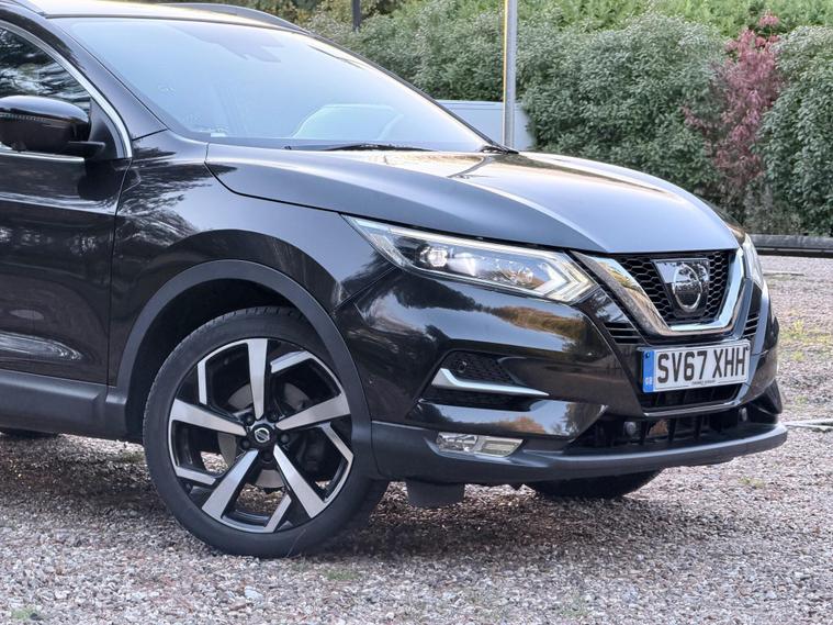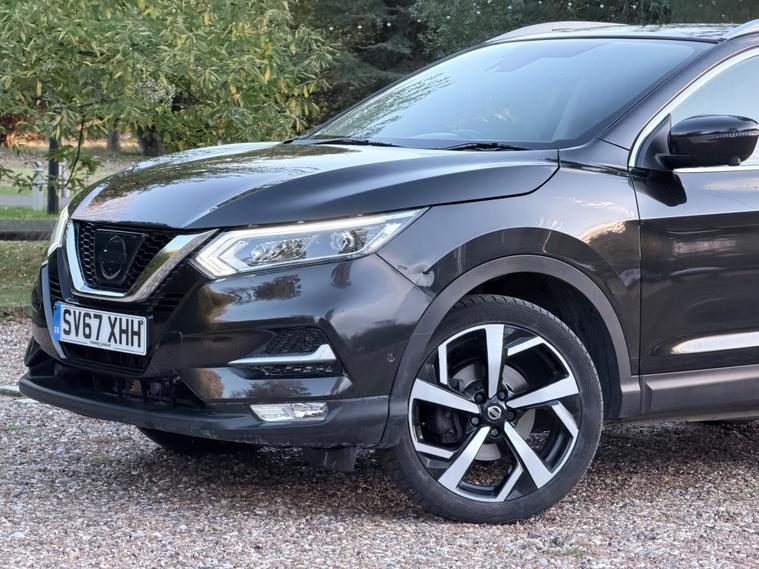 This 2017 Nissan Qashqai DIG-T Tekna is a well maintained example of this popular family SUV. It features a 1.2 litre petrol engine and meets Euro 6 emissions standards. The Tekna trim level offers a host of desirable features, including Intelligent Key with keyless entry for effortless access. Parking is made simple with rear parking sensors and the impressive Intelligent Around View Monitor, which provides a 360 degree camera view. Inside, you'll find heated seats as part of the Executive Pack, and the car is equipped with bright LED headlights for enhanced visibility.This Qashqai is designed to be economical and affordable to run. It achieves an impressive fuel economy of 50 miles per gallon, which is better than many other vehicles in its class. Furthermore, its low insurance group rating means lower premiums, and its low CO2 emissions contribute to a more environmentally friendly drive. These factors combined make this Nissan Qashqai a sensible and practical choice for everyday motoring..