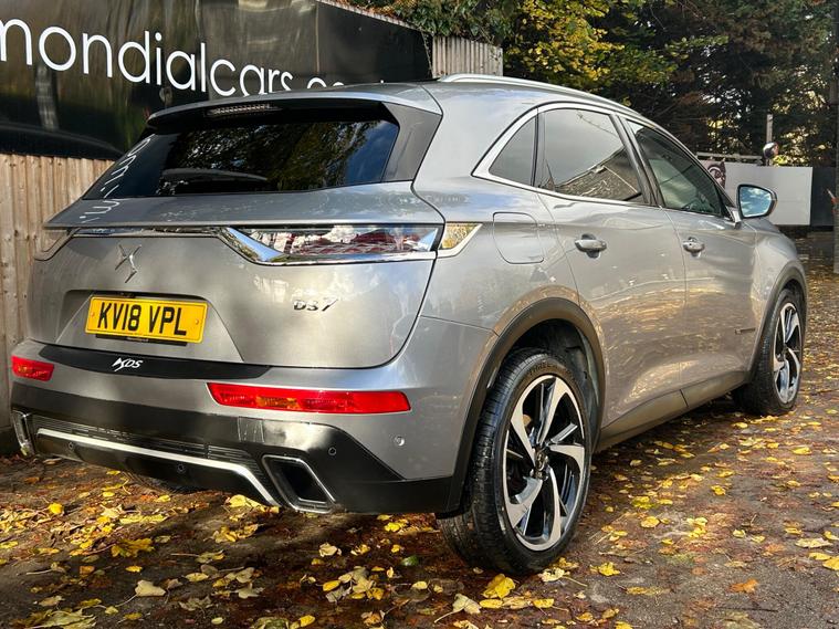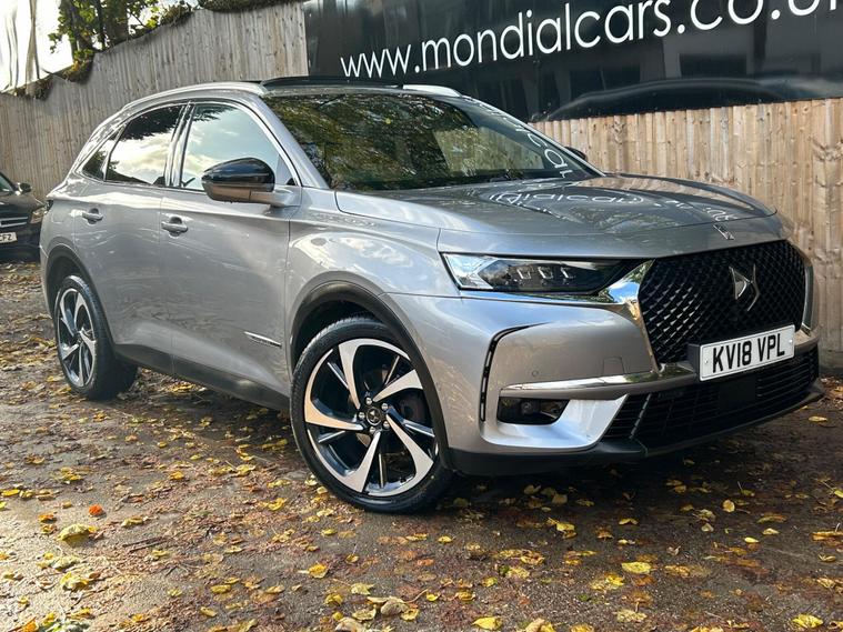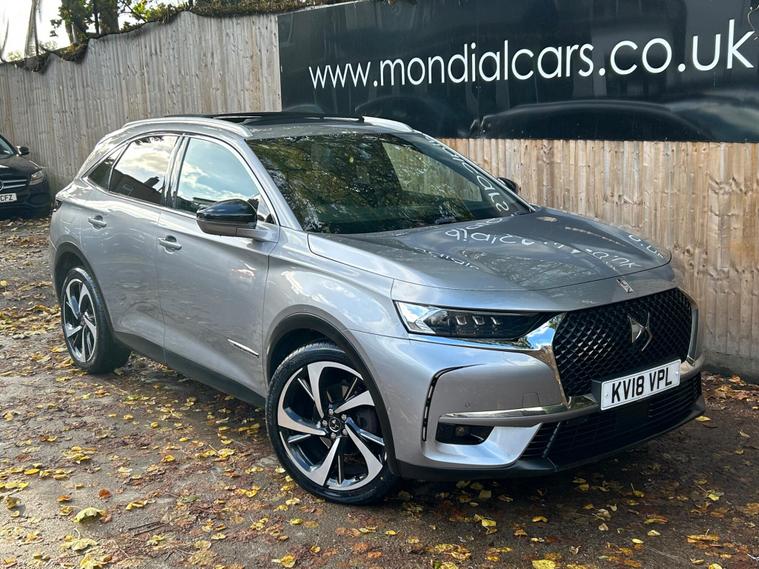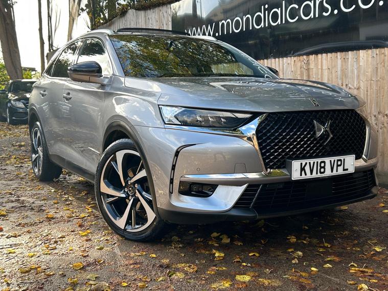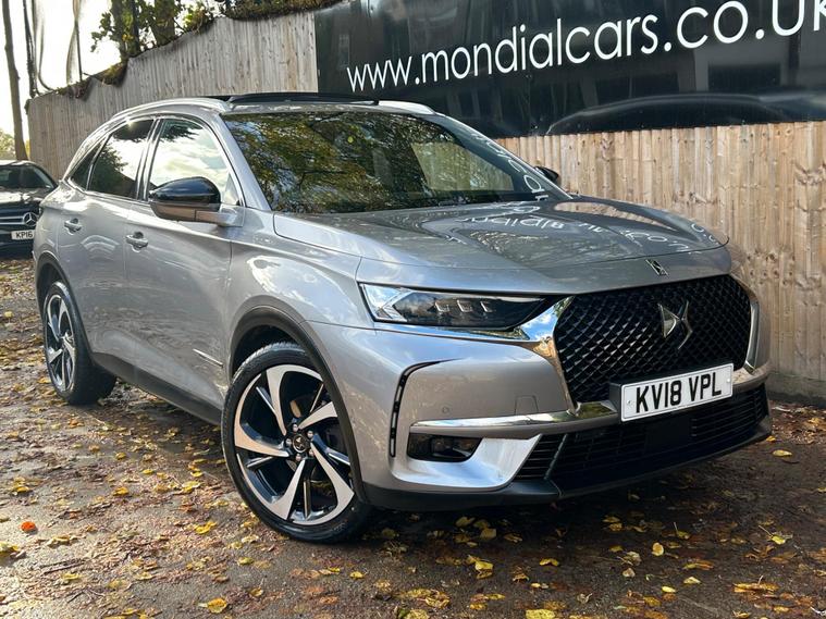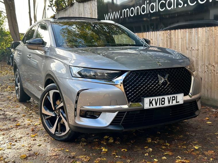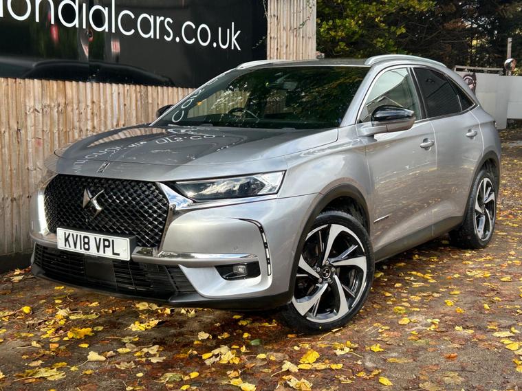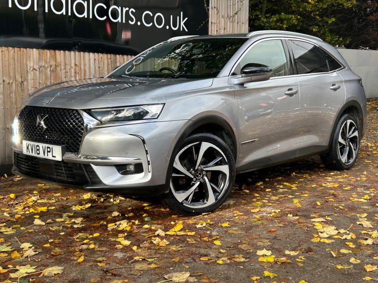 This 2018 DS 7 CROSSBACK BlueHDi Ultra Prestige is a prime example of refined motoring, boasting a powerful yet efficient 2.0L Diesel engine that meets Euro 6 emission standards. As an Ultra Prestige model, it comes equipped with the sophisticated DS Connected Pilot, featuring adaptive cruise control for effortless journeys, and the Auto Comfort Pack, which includes climate control to ensure a pleasant cabin environment. Further enhancing your experience are the electric opening panoramic sunroof with ambient LED lighting and the DS Urban Pack, offering a 360 degree camera for seamless parking assistance.The DS 7 CROSSBACK Ultra Prestige stands out with its FOCAL Electra HiFi System, delivering an exceptional audio experience. This vehicle also offers generous boot space, making it practical for all your needs. Its low CO2 emissions highlight its commitment to efficiency, setting it apart from many other vehicles in its class and providing a more economical driving experience..