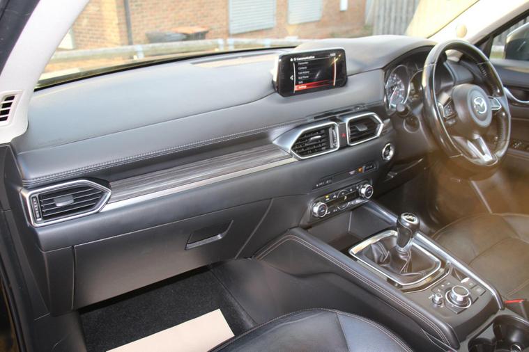 0% Deposit finance available all cases considered, This 2018 Mazda CX-5 SKYACTIV-D Sport Nav is a well maintained example of this popular SUV. It features a responsive 2.2 litre diesel engine paired with a Four Wheel Drive system, ensuring confident handling in various conditions. As a Euro 6 compliant vehicle, it meets modern emissions standards. Inside, you'll find a comfortable cabin equipped with Dual Zone Climate Control for personalised comfort, and heated front seats with three stage settings for those colder days. The Sport Nav trim also includes LED headlights with auto levelling for excellent visibility, and front and rear parking sensors to assist with manoeuvring. Entertainment is provided by an AM-FM DAB radio with a single CD player and a premium Bose Centrepoint Surround Sound System featuring nine speakers.This Mazda CX-5 offers a compelling blend of performance and practicality. Its acceleration from 0-62mph in just 9.0 seconds demonstrates its capable performance. The vehicle boasts an impressive fuel economy of 52 mpg, making it an economical choice for longer journeys. Furthermore, its low insurance group rating indicates that running costs are kept to a minimum. The generous boot space provides ample room for luggage or shopping, making it a versatile option for families and individuals alike. These highlights collectively position this CX-5 as a superior choice compared to other vehicles in its class..
