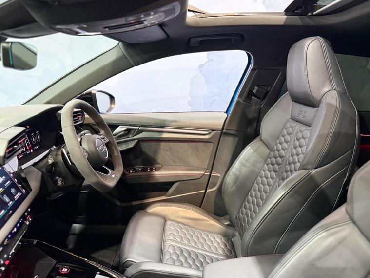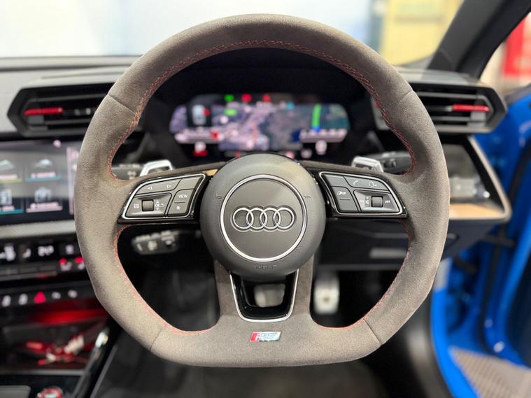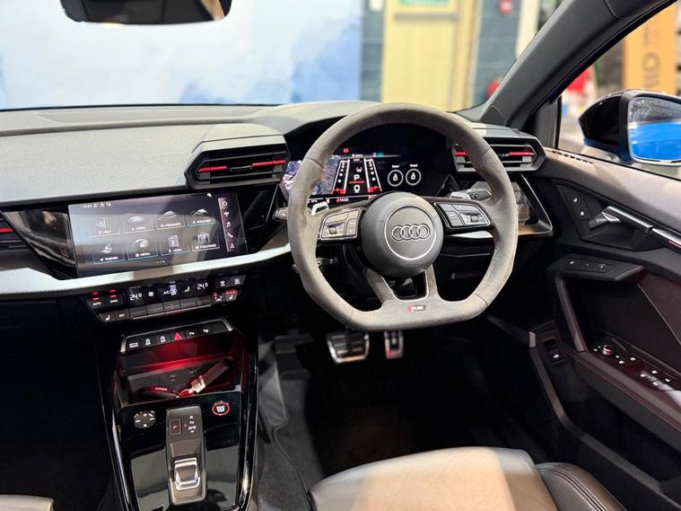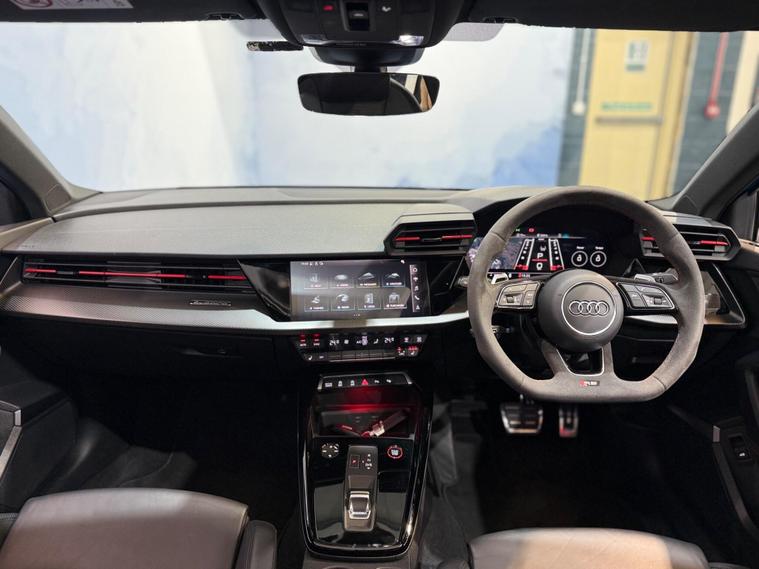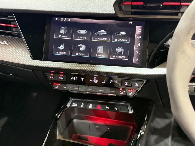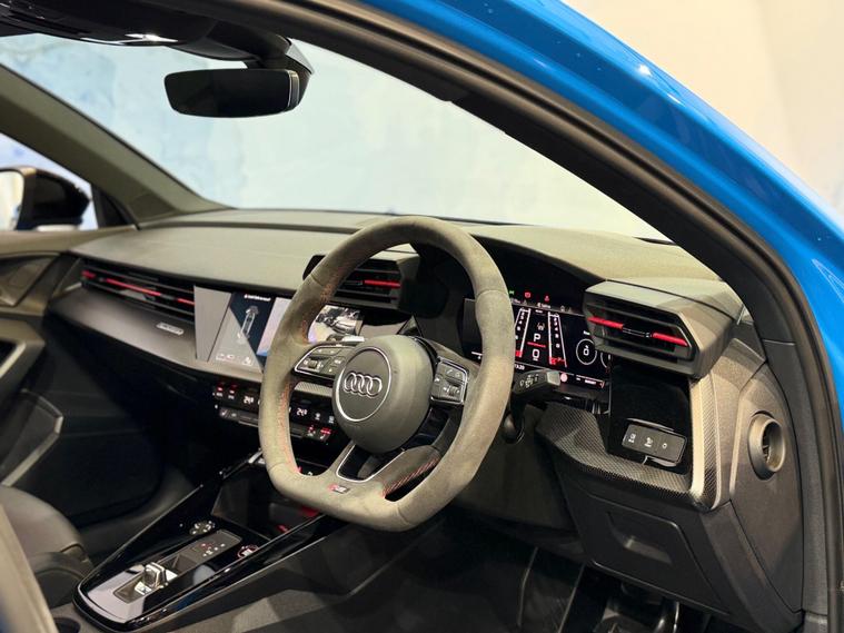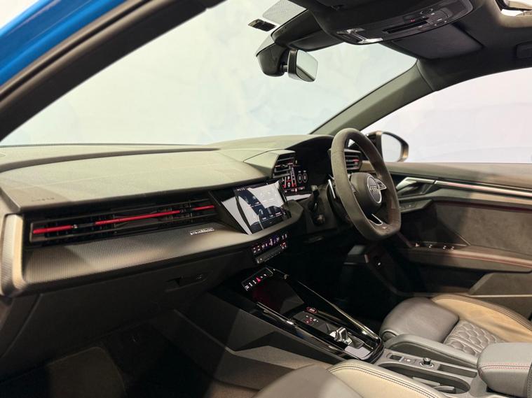 This 2023 Audi RS3 TFSI Vorsprung is a remarkable example of performance and luxury. As a Euro 6 compliant model, it combines exhilarating driving dynamics with advanced technology. The RS3 Vorsprung is equipped with a potent 2.5 litre petrol engine and a sophisticated four wheel drive system, ensuring exceptional grip and responsiveness. Inside, you will find a host of premium features designed for comfort and convenience, including heated front seats, the Audi Smartphone Interface with Android Auto compatibility, and a Head Up Display. The Light and Rain Sensor automatically manages headlights and wipers, while the Dual Zone Electronic Climate Control allows for personalised cabin temperatures.The performance of this Audi RS3 is truly outstanding, accelerating from 0 to 62 miles per hour in a mere 3.8 seconds. This impressive acceleration figure highlights how this vehicle surpasses many others in its class, offering a driving experience that is both thrilling and refined. The combination of its powerful engine, advanced drivetrain, and comprehensive list of notable features makes this 2023 Audi RS3 TFSI Vorsprung a compelling choice for those seeking a high performance vehicle with a touch of everyday usability..