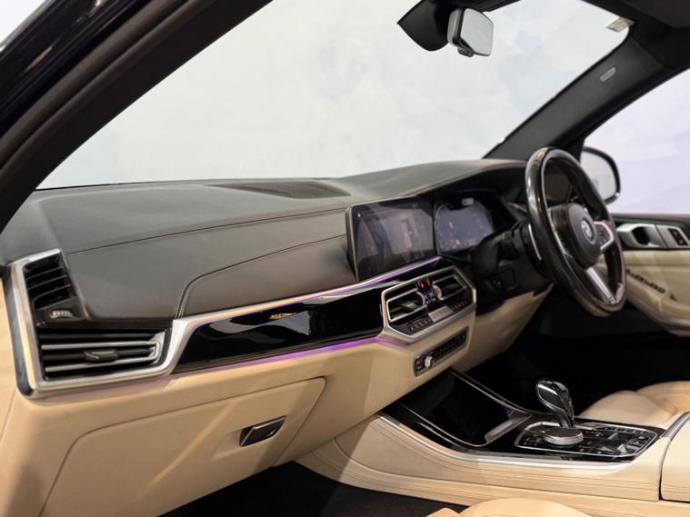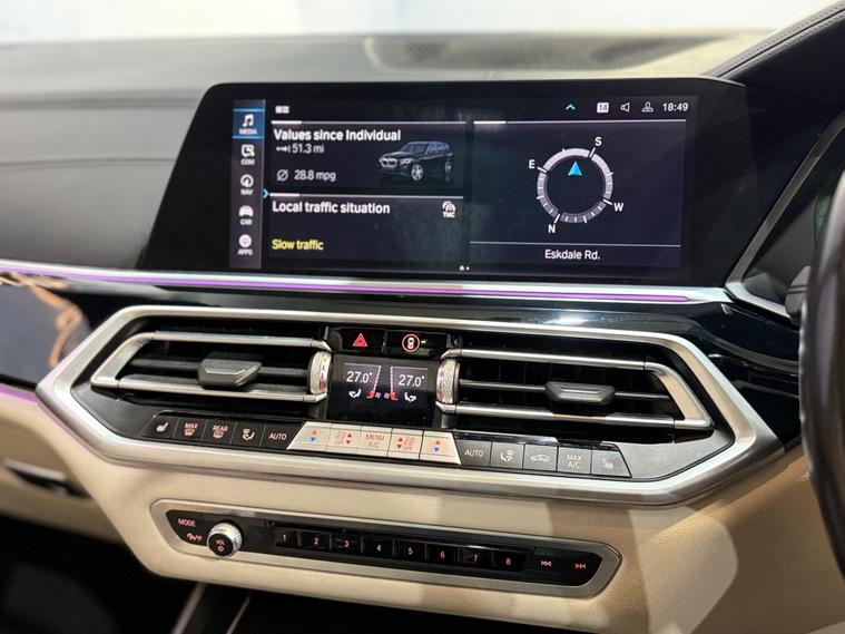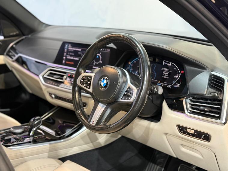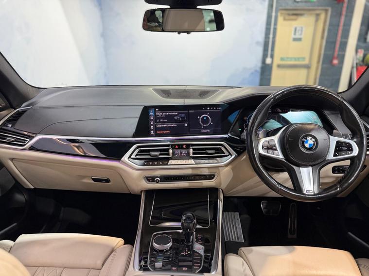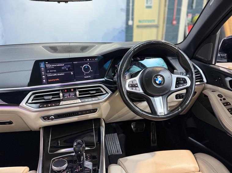 This 2019 BMW X5 30d M Sport offers a truly premium experience, boasting a BMW Individual Instrument Panel finished in leather and extended Merino leather in Ivory White and Black. This Euro 6 compliant, four wheel drive model is powered by a robust 3.0L diesel engine, delivering impressive performance with a 0-62mph acceleration time of just 6.5 seconds. The M Sport trim enhances its dynamic appeal, while the Sky Lounge panoramic glass sunroof, which includes an opening function, floods the cabin with light.Further enhancing this exceptional vehicle is the Technology Package, featuring a Head Up Display for convenient information access, a 360 degree camera system with front and rear cameras for effortless parking, and a premium branded sound system for an immersive audio experience. The inclusion of third row seating provides versatile passenger capacity, and the generous boot space ensures ample room for luggage. Notably, this X5 sits in a low insurance group, offering a more economical ownership proposition compared to similar vehicles..