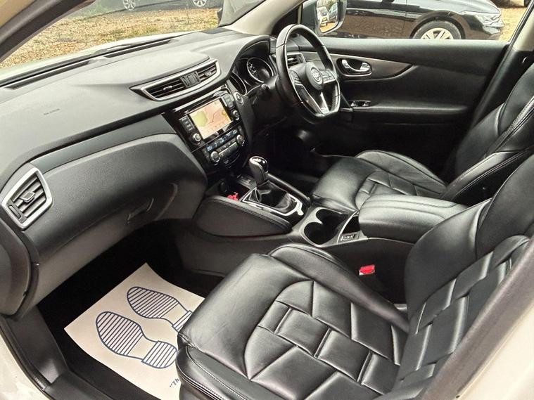 Nissan Qashqai 1.3 DIG-T N-Motion DCT Auto, in White with Black Leather Interior, Climate Control, Alloys, Panoramic Roof, Sat Nav, 360 Cameras, and much more new in stock, and will update details ASAP..
