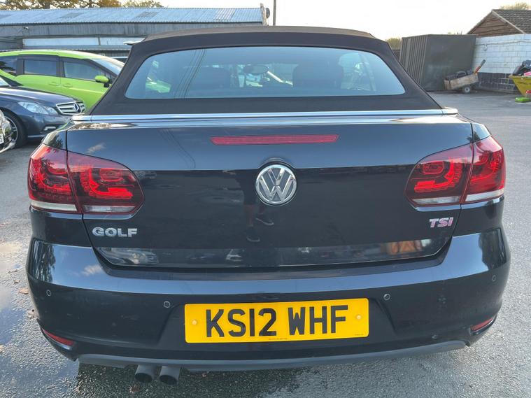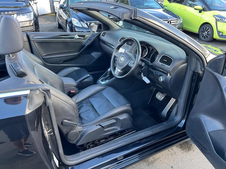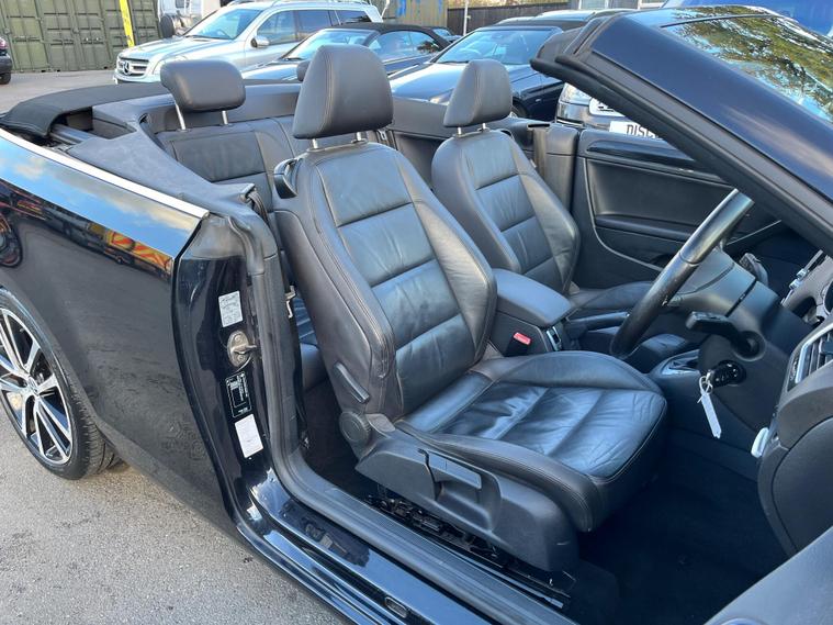 THIS Volkswagen Golf 1.4 TSI GT Cabriolet DSG Euro 5 2dr POWER ROOF CONVERTIBLE AUTOMATIC LOOKS AMAZING IN EBONY METALLIC & CONTRASTING GREY SOFT VIENNA LEATHER SEATS AND DOOR CARDS HEADLINING & ALUMINIUM TRIM TO THE DASH & DOOR CARDS YES VERY SMART. THE LAST LADY OWNER HAS LOVED THE CONVERTIBLE FOR YEARS YOU CAN TELL THAT BY THE SUPERB NEW CONDITION THE CABRIO IS IN YES AND IT'S REALLY GOOD MILEAGE FOR THE YEAR ONLY 80K WITH A FULL SERVICE HISTORY. EXTRAS INCLUDE COLOUR FACTORY WIDE SCREEN SAT NAV WITH WITH CD-MULTI-PLAYER, BLUE TOOTH TELEPHONE CONNECTION, FRONT & REAR PARKING AID, DUAL ZONE DIGITAL CLIMATE CONTROL AIR-CONDITIONING, REMOTE CONTROL CENTRAL LOCKING, 18 INCH DIAMOND CUT ALLOY WHEELS JUST REFURBISHED IT COMES WITH 2 SETS OF REMOTE KEYS & ALL THE BOOKS & MANUALS. Under the bonnet lies a capable 1.4 litre petrol engine, paired with the GT trim for a balanced blend of performance and efficiency. This particular model is equipped with the advanced Park Assist system, which includes front and rear parking sensors and a rear view camera, making manoeuvring effortless. Navigating your journeys is simple with the RNS 510 DVD touch screen satellite navigation and radio system, complete with integrated voice control. Further enhancing convenience are the dusk sensing headlights, which automatically activate when light levels drop, and a 2 zone electronic climate control system that maintains your preferred cabin temperature with automatic air recirculation. This Volkswagen Golf TSI GT stands out with its impressive fuel economy, achieving a highlight of 45 miles per gallon, indicating it is more economical than many similar vehicles. Its low CO2 emissions also contribute to its appeal, suggesting a more environmentally conscious choice. Furthermore, you will appreciate the generous boot space, offering ample room for luggage or shopping, making it a practical option for everyday use and longer trips. These highlights collectively demonstrate the Golf TSI GT's superior value and capability compared to other vehicles in its class..